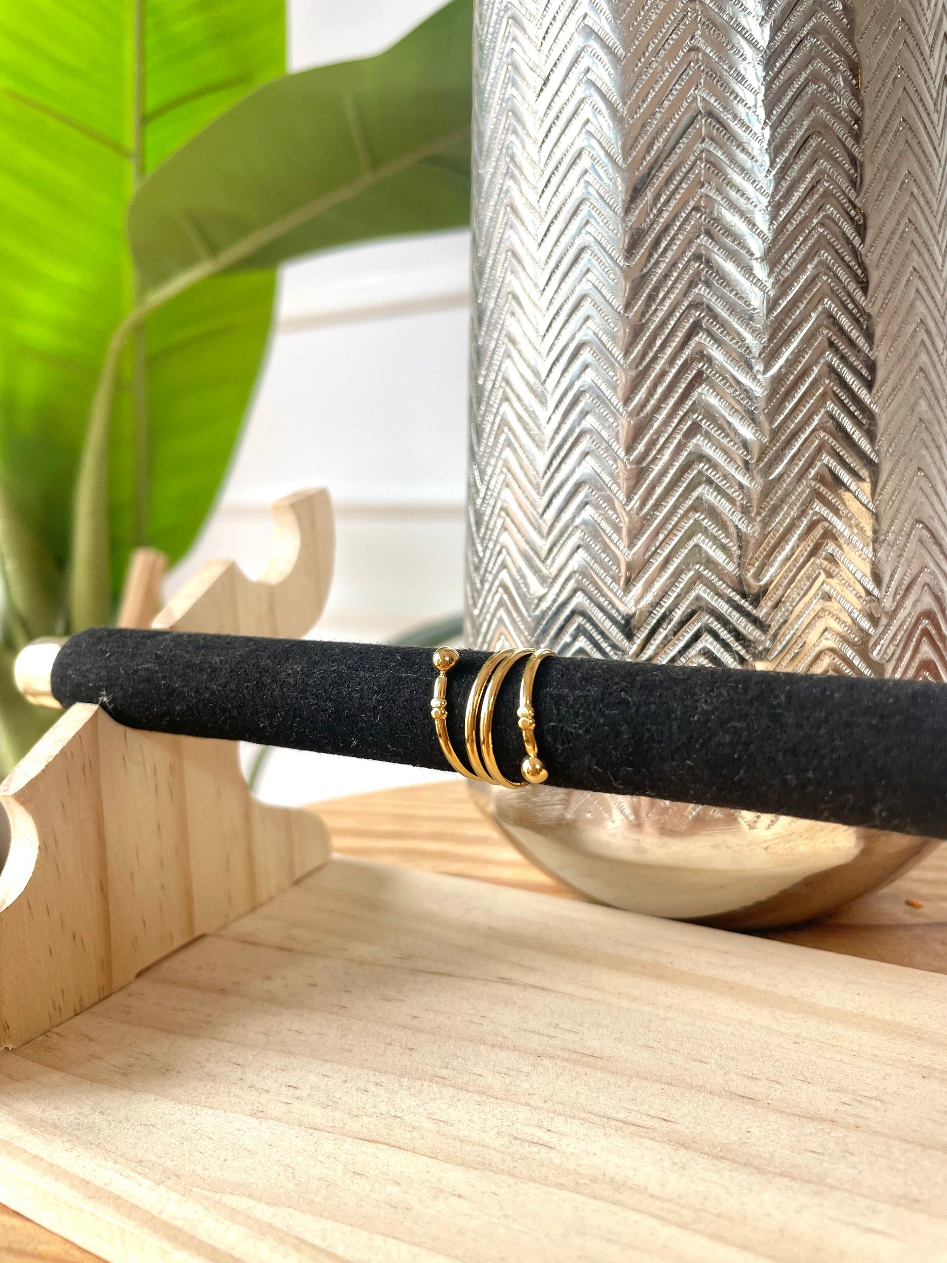 Este anillo Wendy es un accesorio atemporal para tu estilo distinguido. Diseñado con acero inoxidable bañado en oro, combina elegancia con durabilidad para lucir espléndido con cada ocasión. Una pieza clásica perfecta para añadir un toque refinado a tu look.