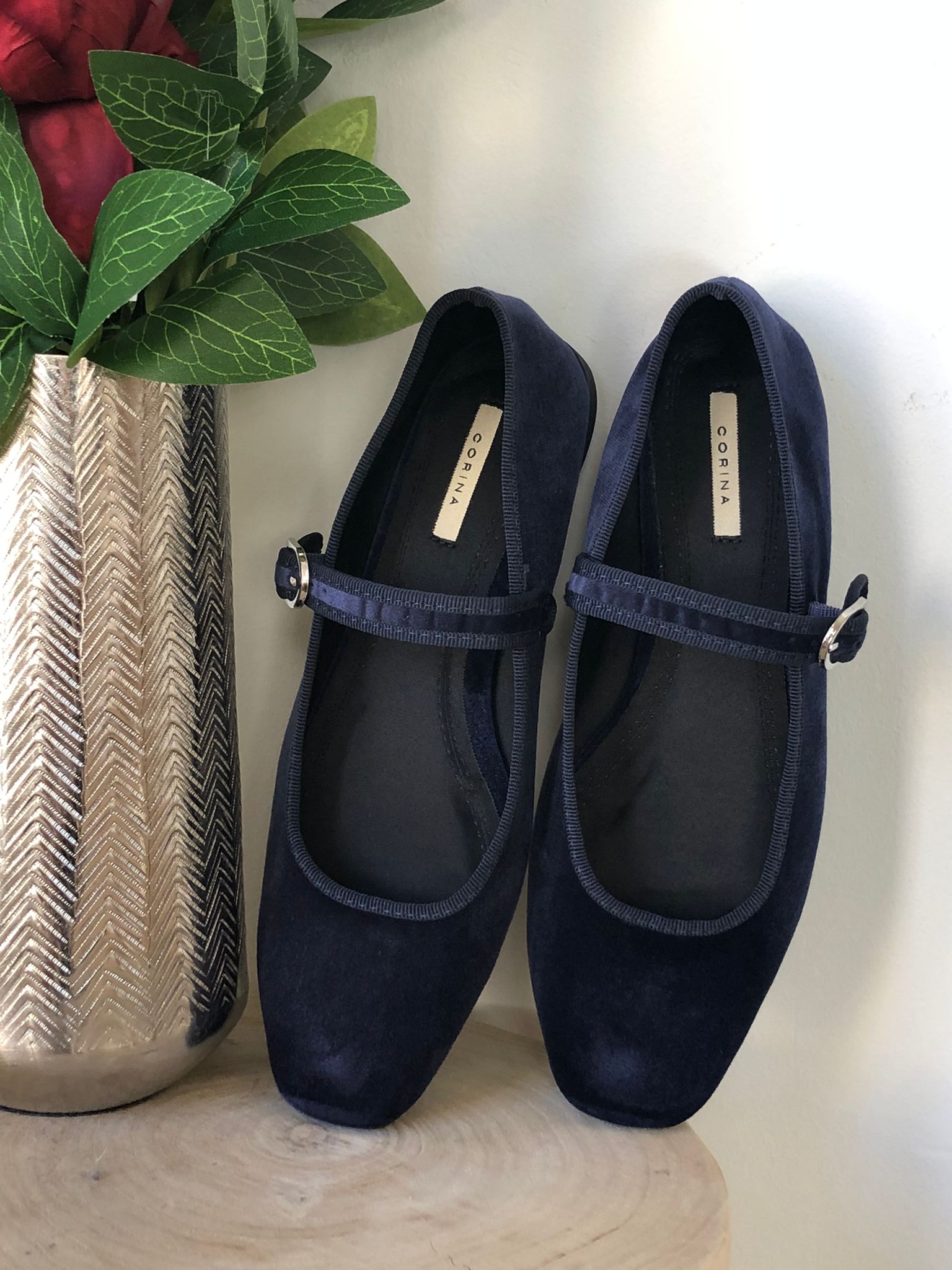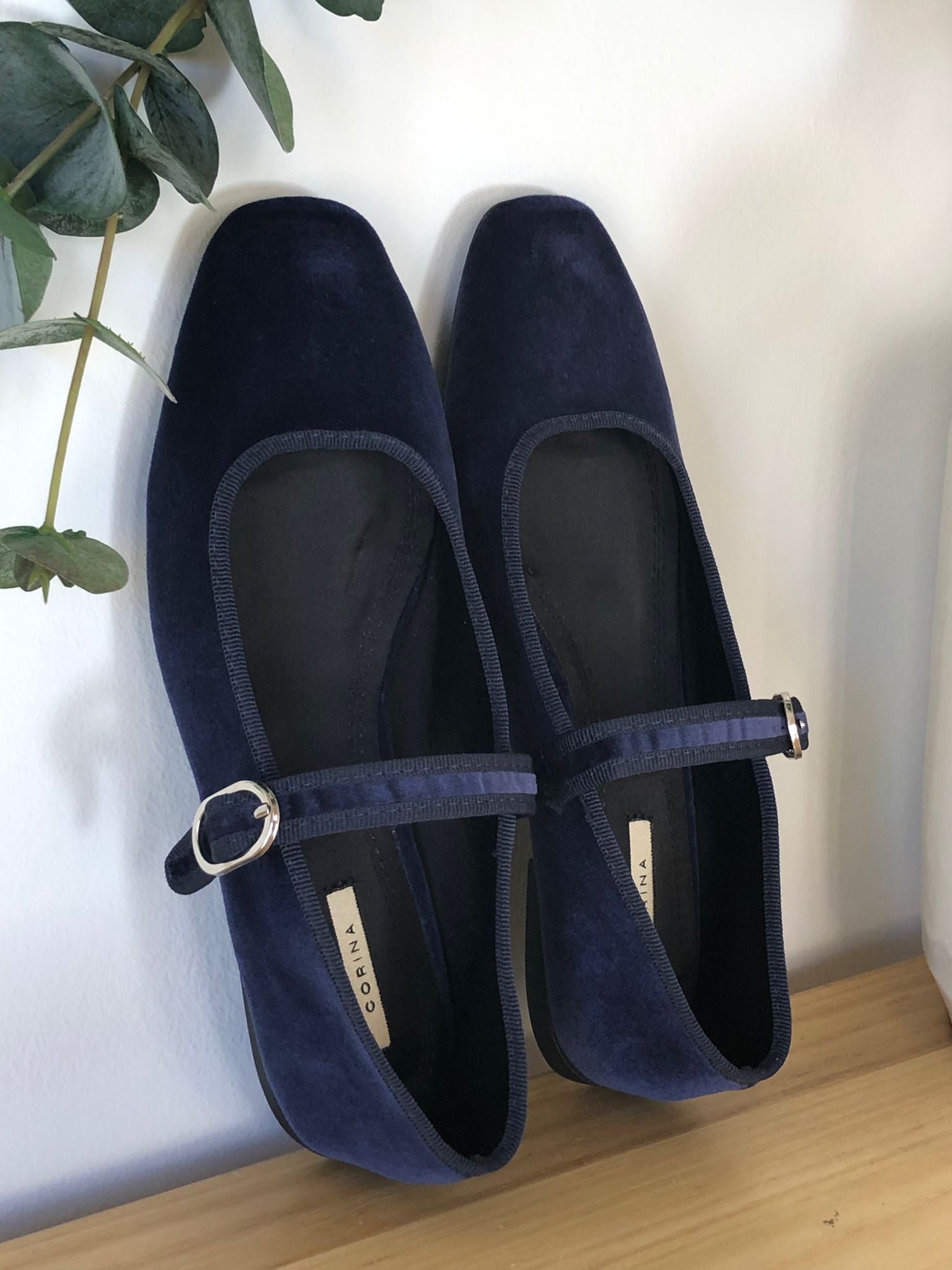 Estas bailarinas estilo Mary Jean en color azul lucen elegantes y cómodas gracias a su efecto terciopelo. Con su diseño clásico, te brindarán un toque sofisticado a tus looks diarios. Perfectas para una apariencia profesional y femenina.