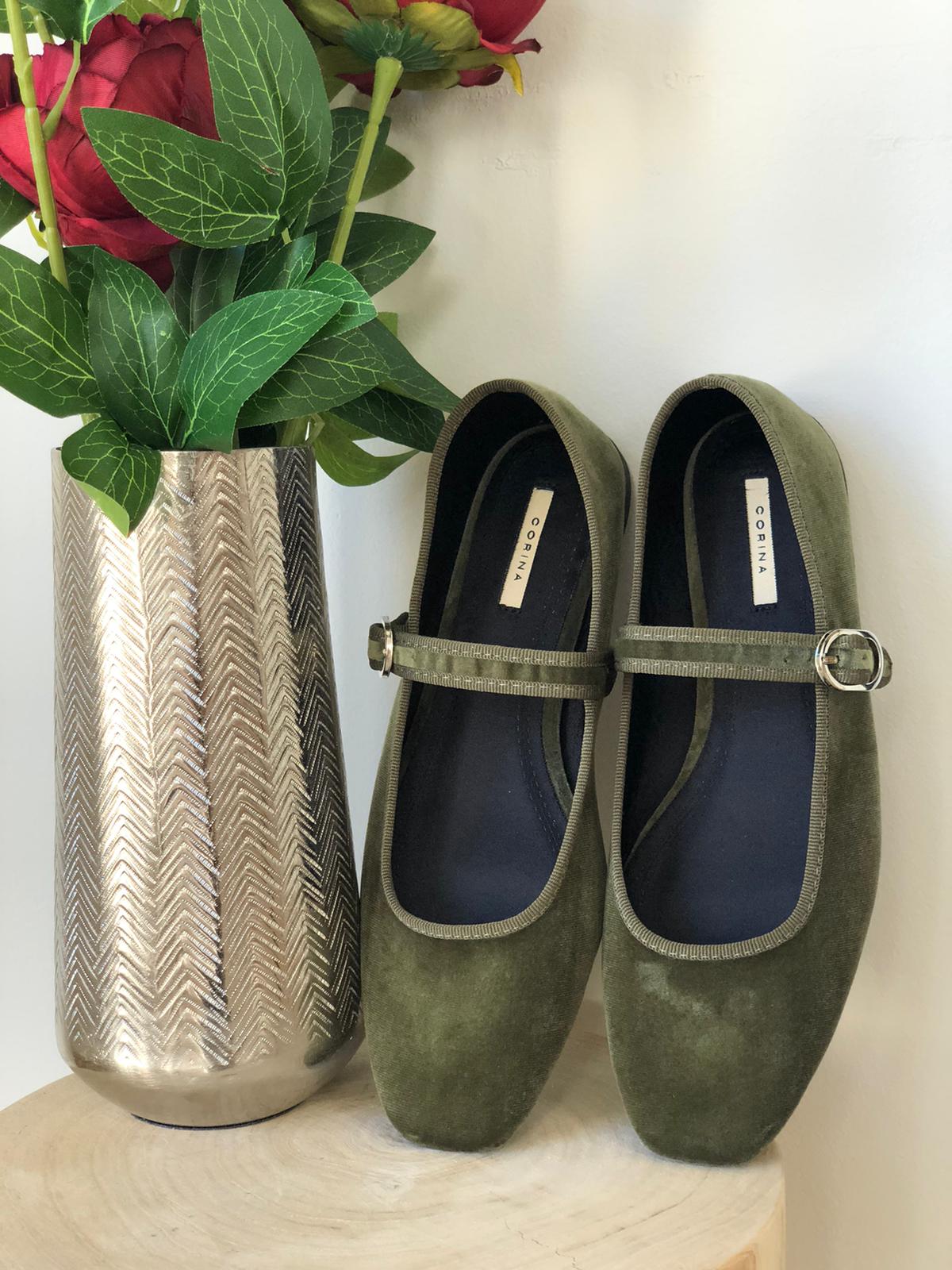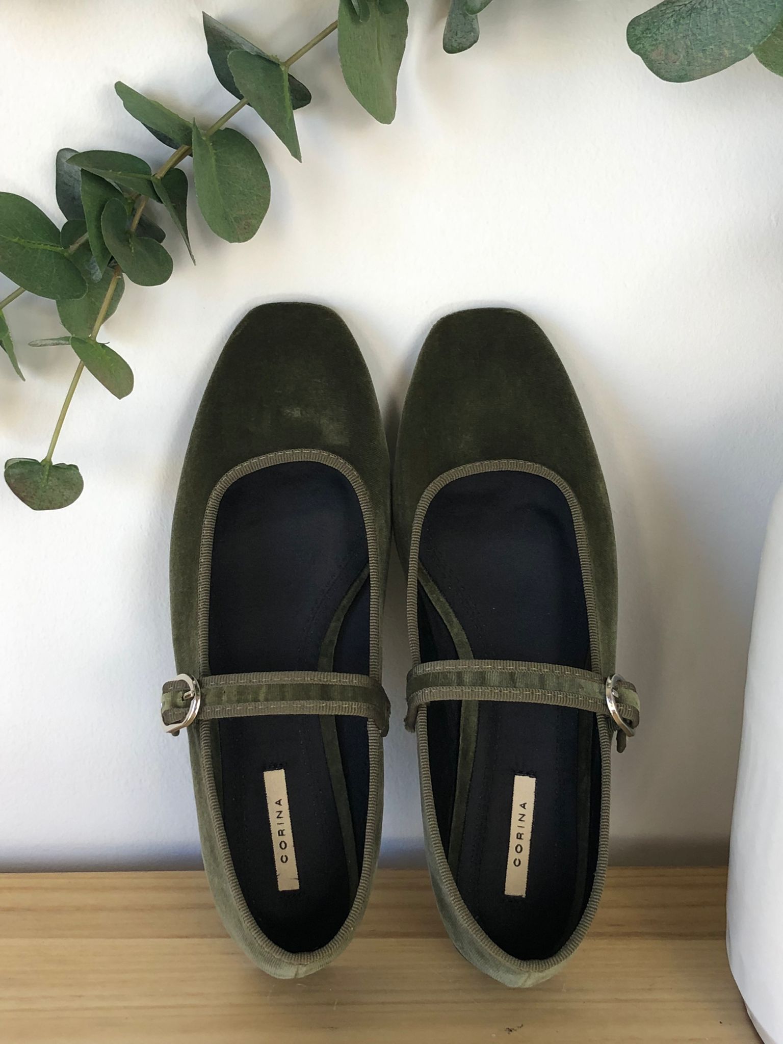 Estas bailarinas estilo Mary Jean en color verde lucen elegantes y cómodas gracias a su efecto terciopelo. Con su diseño clásico, te brindarán un toque sofisticado a tus looks diarios. Perfectas para una apariencia profesional y femenina.