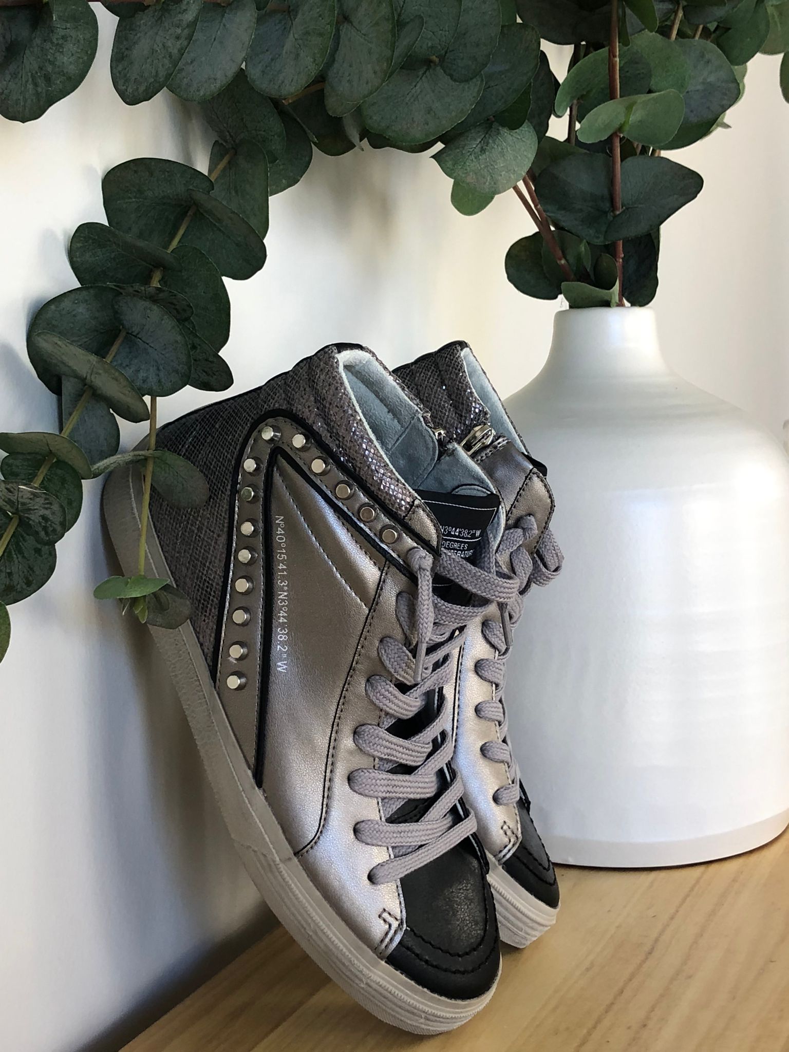 Las bambas bota Teagan son de estilo elegante con un toque moderno. Con su diseño plateado y detalles de tachas, estas bambas no solo te mantendrán cómodo/a, sino también a la moda. Combínalas con cualquier atuendo y destaca en cualquier ocasión.