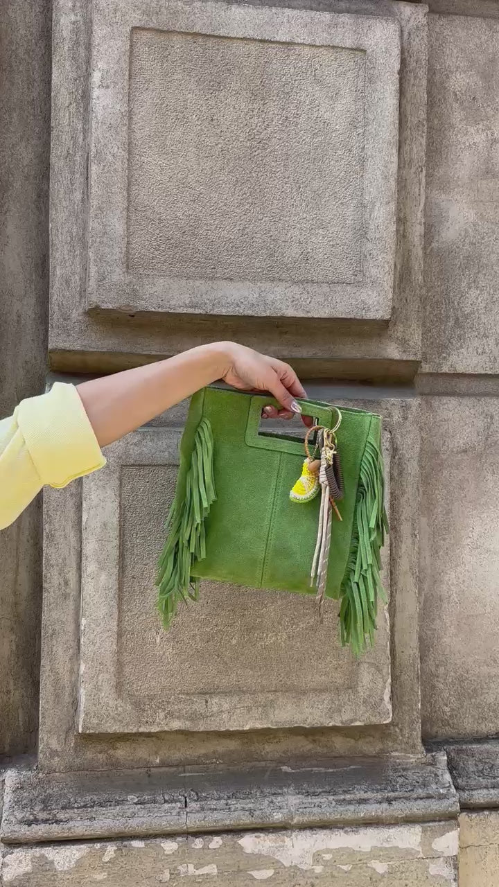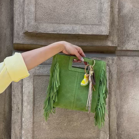 Bolso de ante con flecos, color verde