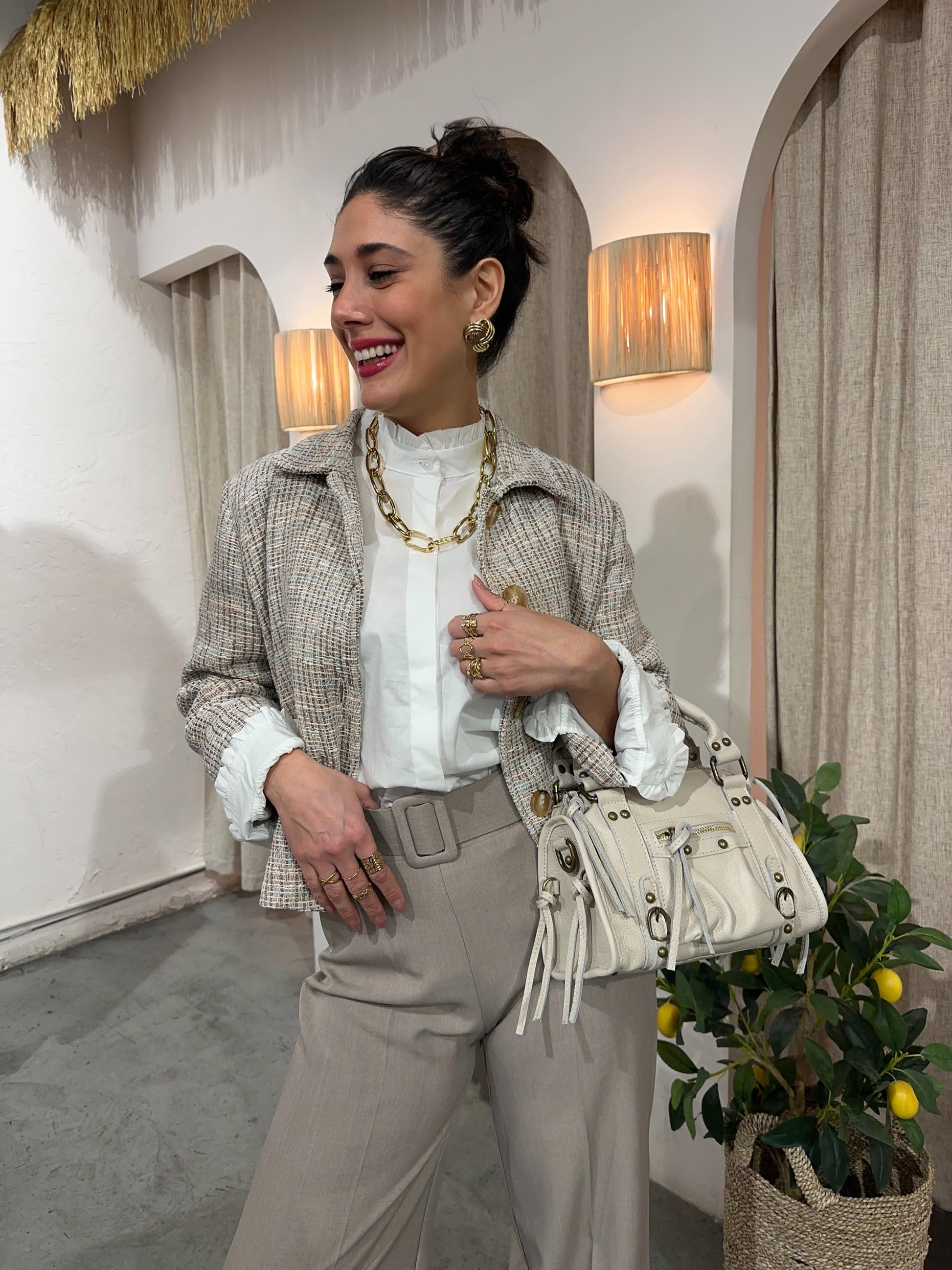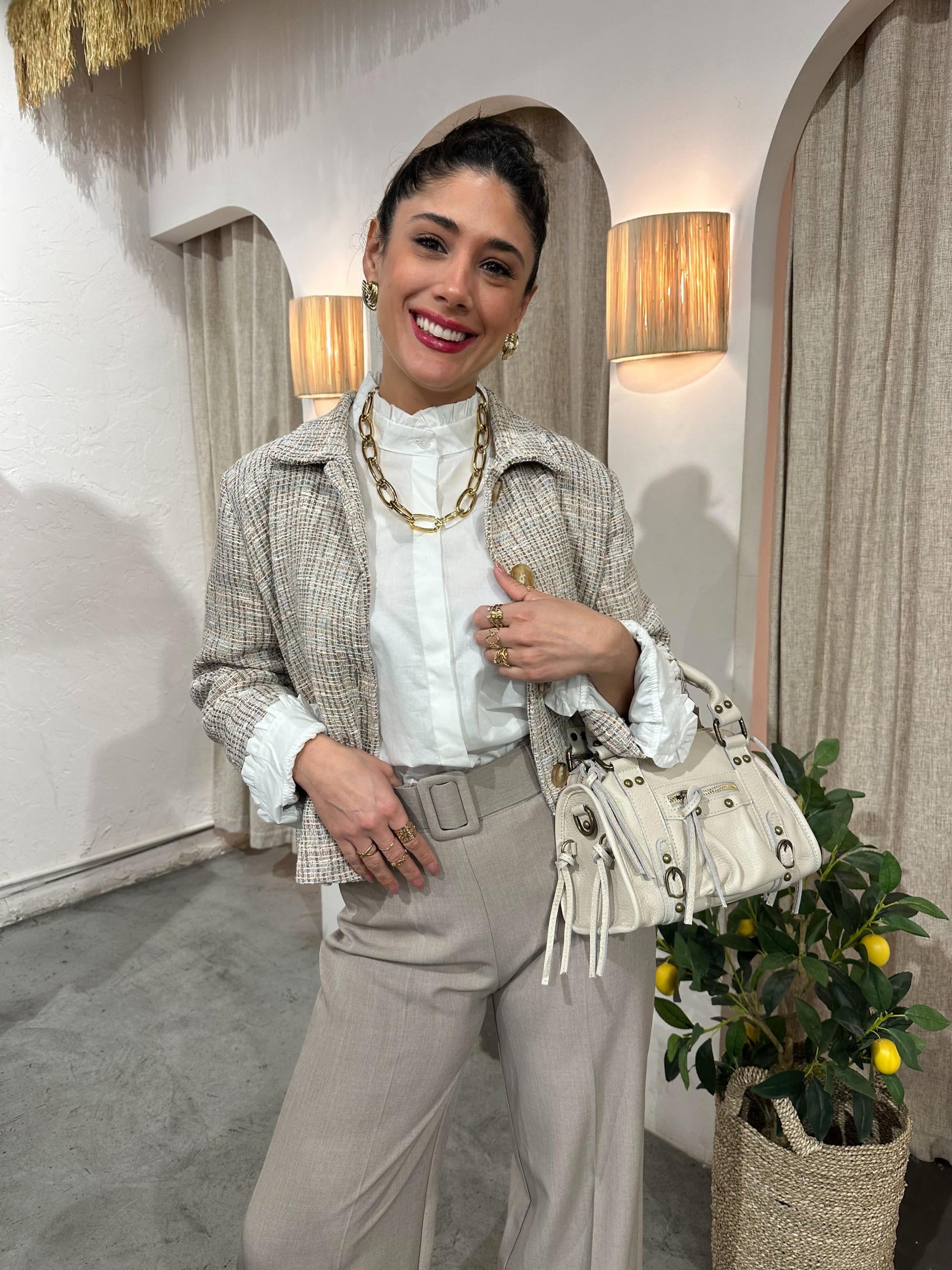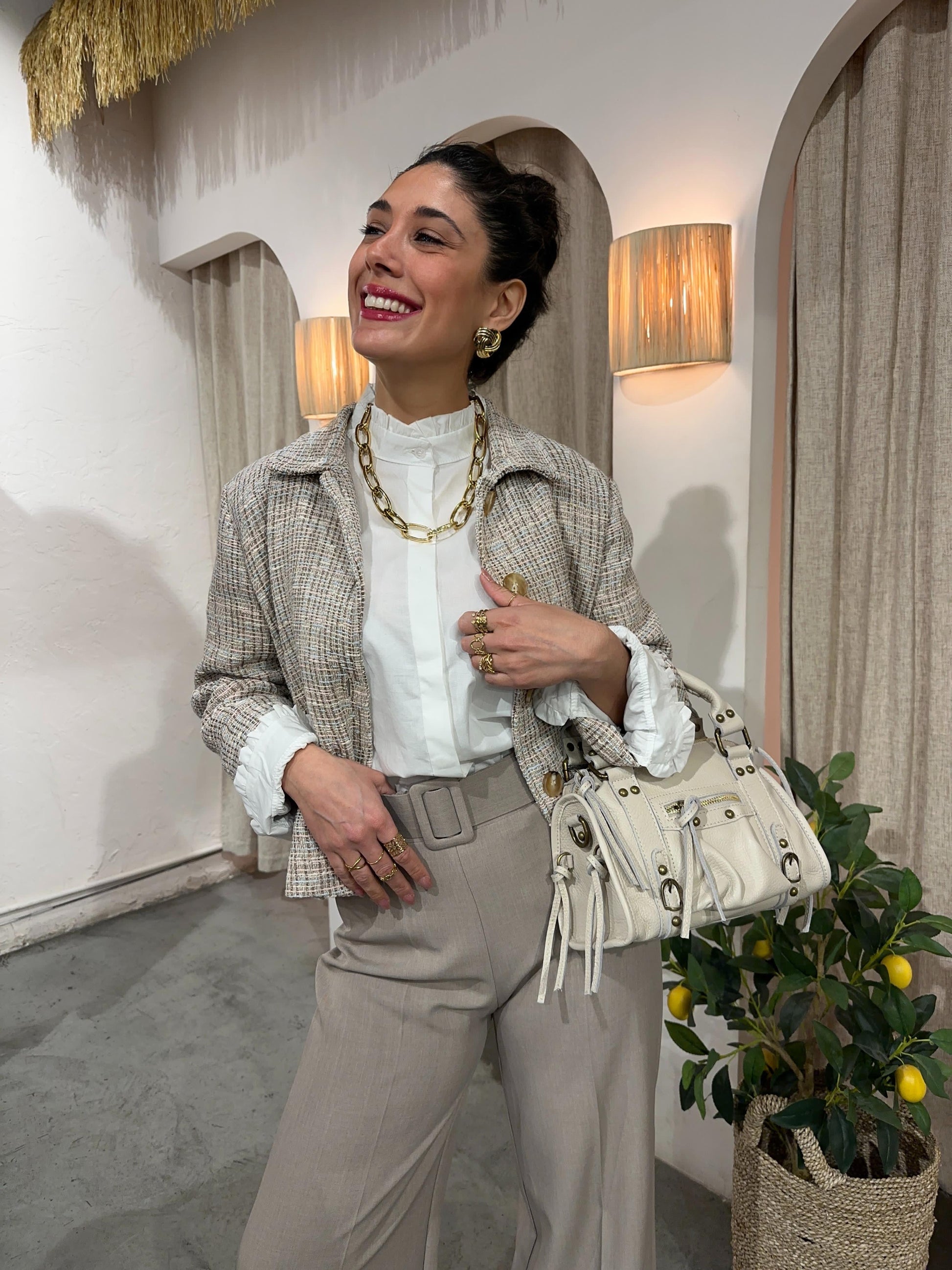 ¡Muestre su elegancia con nuestra camisa Denier! Con un cuello fruncido, esta camisa es perfecta para cualquier ocasión. Mantente cómoda y a la moda al mismo tiempo. ¡Hazte con una ahora mismo!