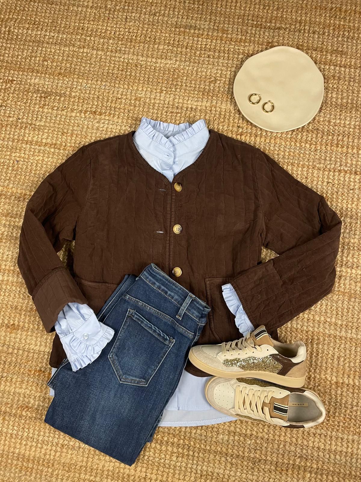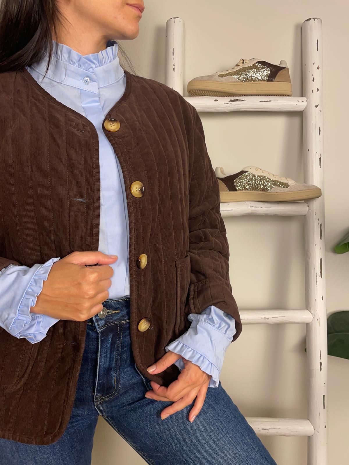 Esta chaqueta de pana es una excelente opción para mantenerte abrigado y a la moda. Cuenta con botones bicolor que le dan un toque único y moderno. Esta chaqueta es duradera y cómoda. ¡Imprescindible para cualquier guardarropa!