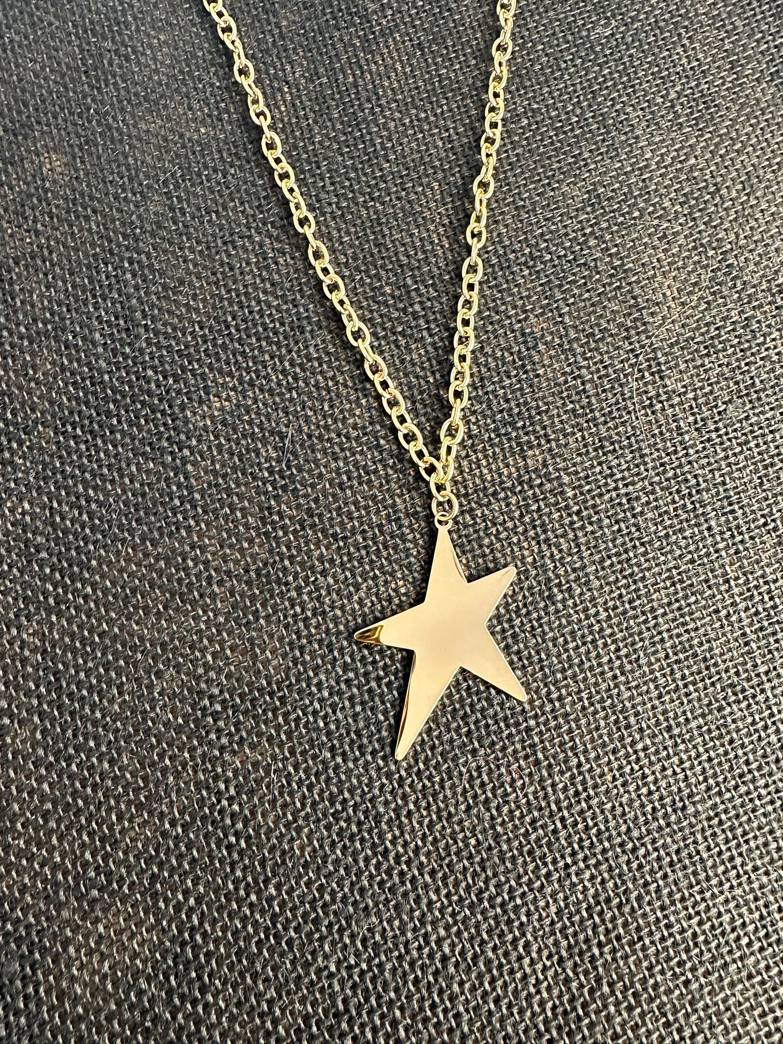Con el Collar Gold Star, lleva contigo la elegancia y exclusividad en todo momento. Su diseño de estrella en acero dorado es resistente al agua, brindándote una pieza de alta calidad y durabilidad para complementar tu estilo de vida único.
