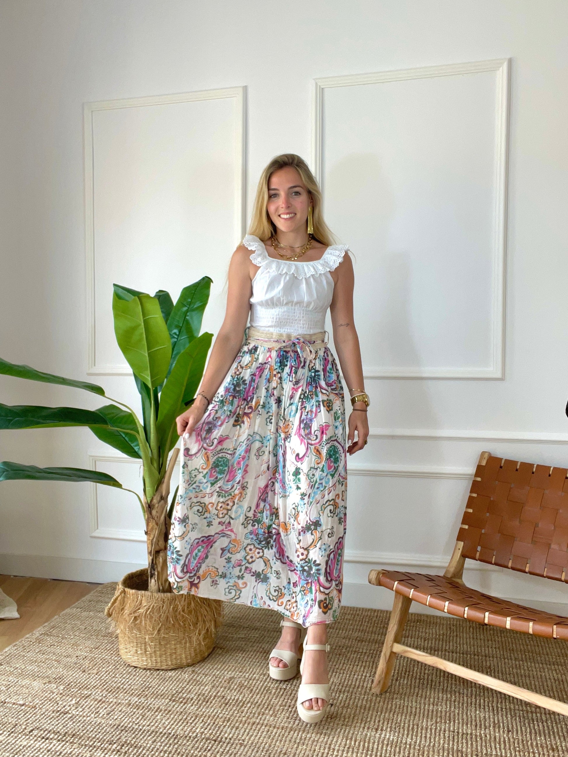 ¡Explora tu pasión por el estilo con la falda Blundy! Esta falda larga de algodón y con cinturón crochet, te ofrece la oportunidad perfecta para expresar tu lado arriesgado, con un estilo que invita a la aventura. ¡Asegúrate de llevar tu look Blundy para destacar!