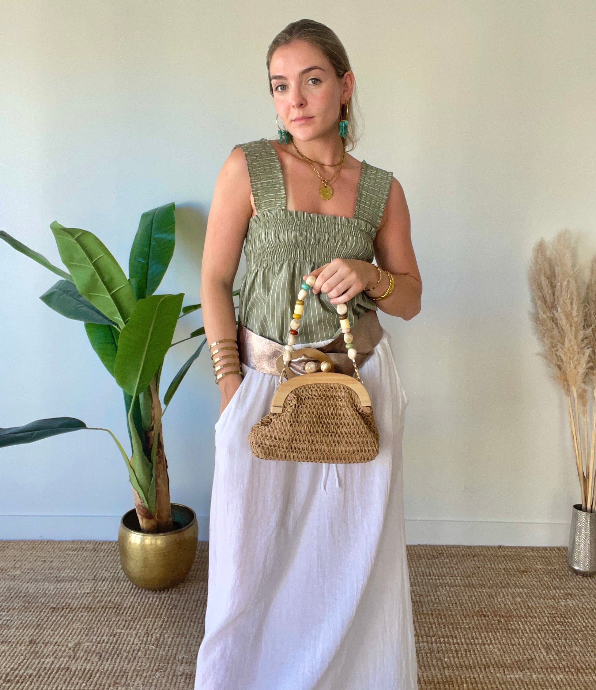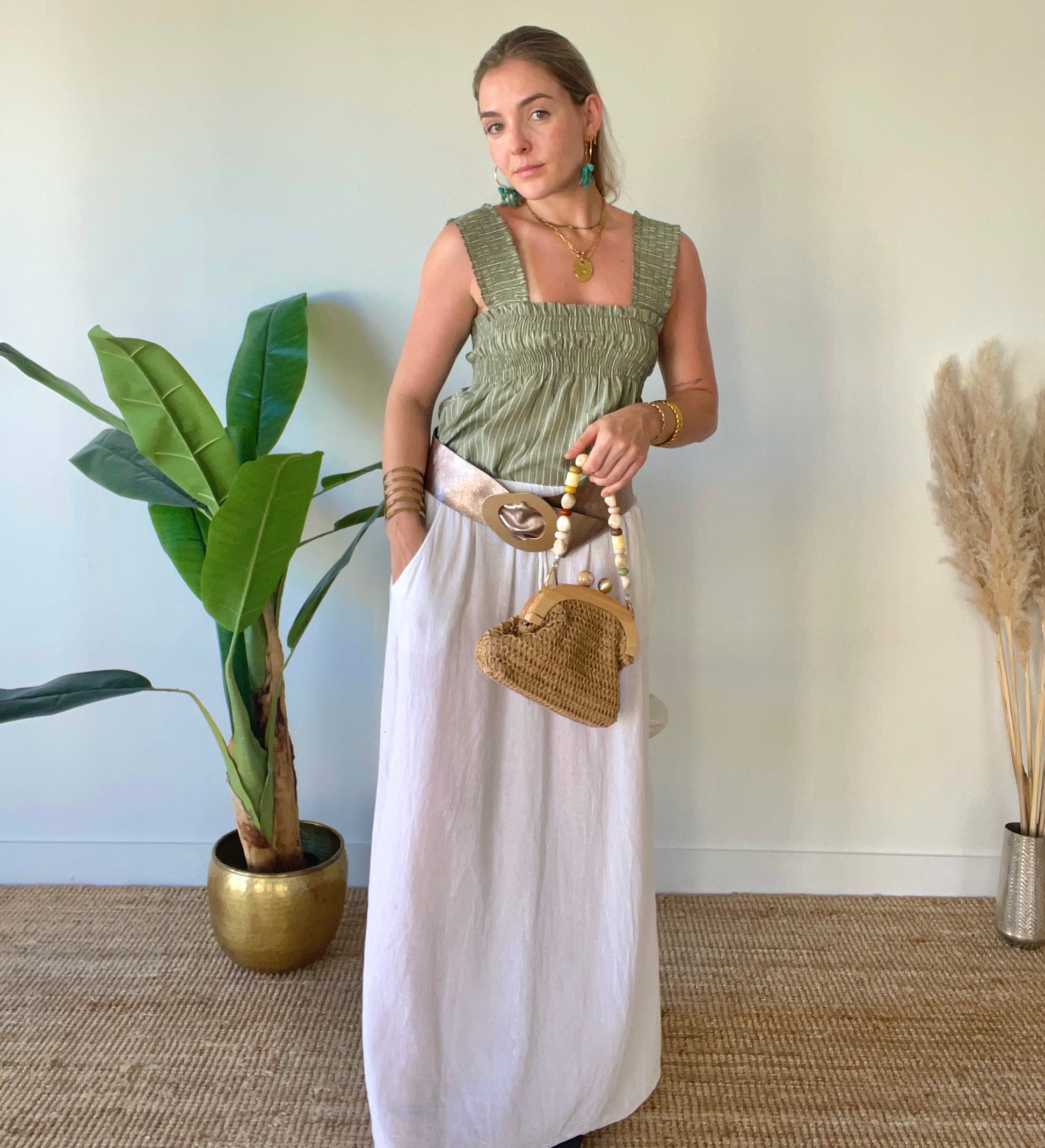 Descubre la elegancia y sofisticación de nuestra falda de lino larga con bolsillos. Confeccionada con materiales premium, esta falda te brinda comodidad y estilo. Su diseño exclusivo y los bolsillos prácticos te permiten llevar contigo tus objetos personales de manera discreta. Ideal para añadir un toque de lujo a tu guardarropa.