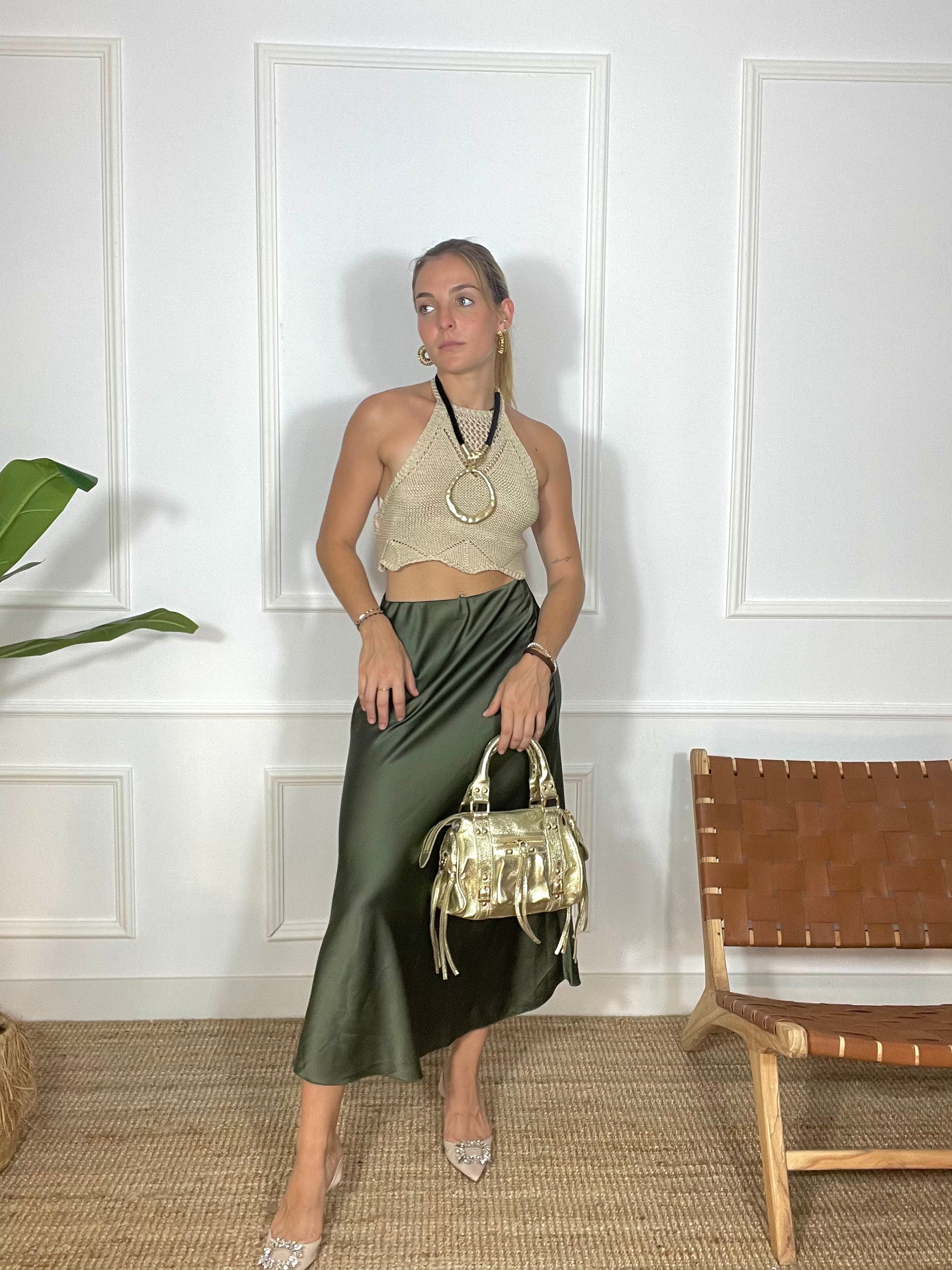 La Falda Floria de satén es una prenda sofisticada con la cual podrás destacar en cualquier ocasión. Esta falda larga se ajusta perfectamente a tu figura, dotando a tu look de un toque único y elegante. Esta prenda suntuosa moldea tu figura de una manera que hará las delicias de todos. ¡Lucirás sofisticada y resplandeciente!