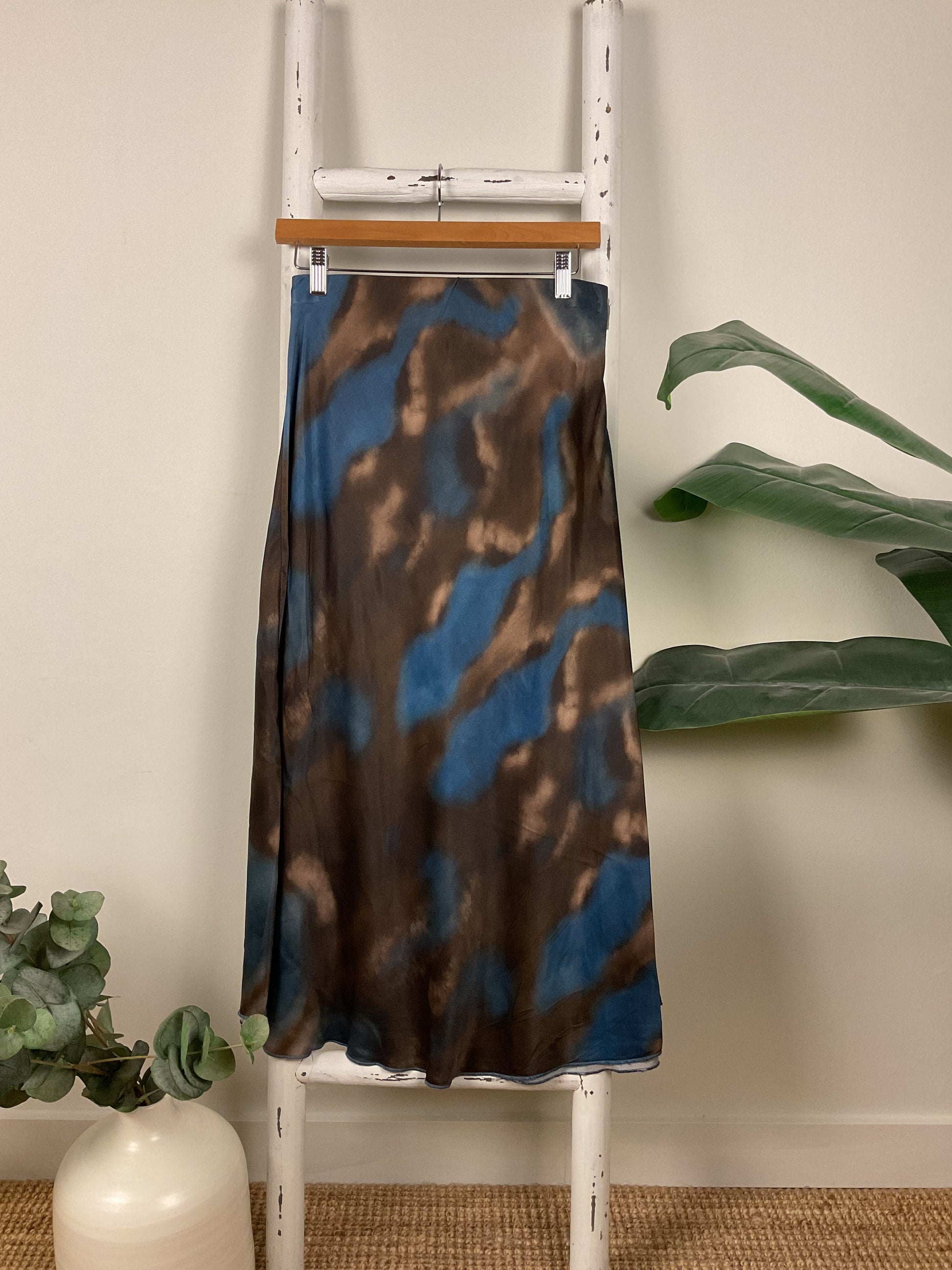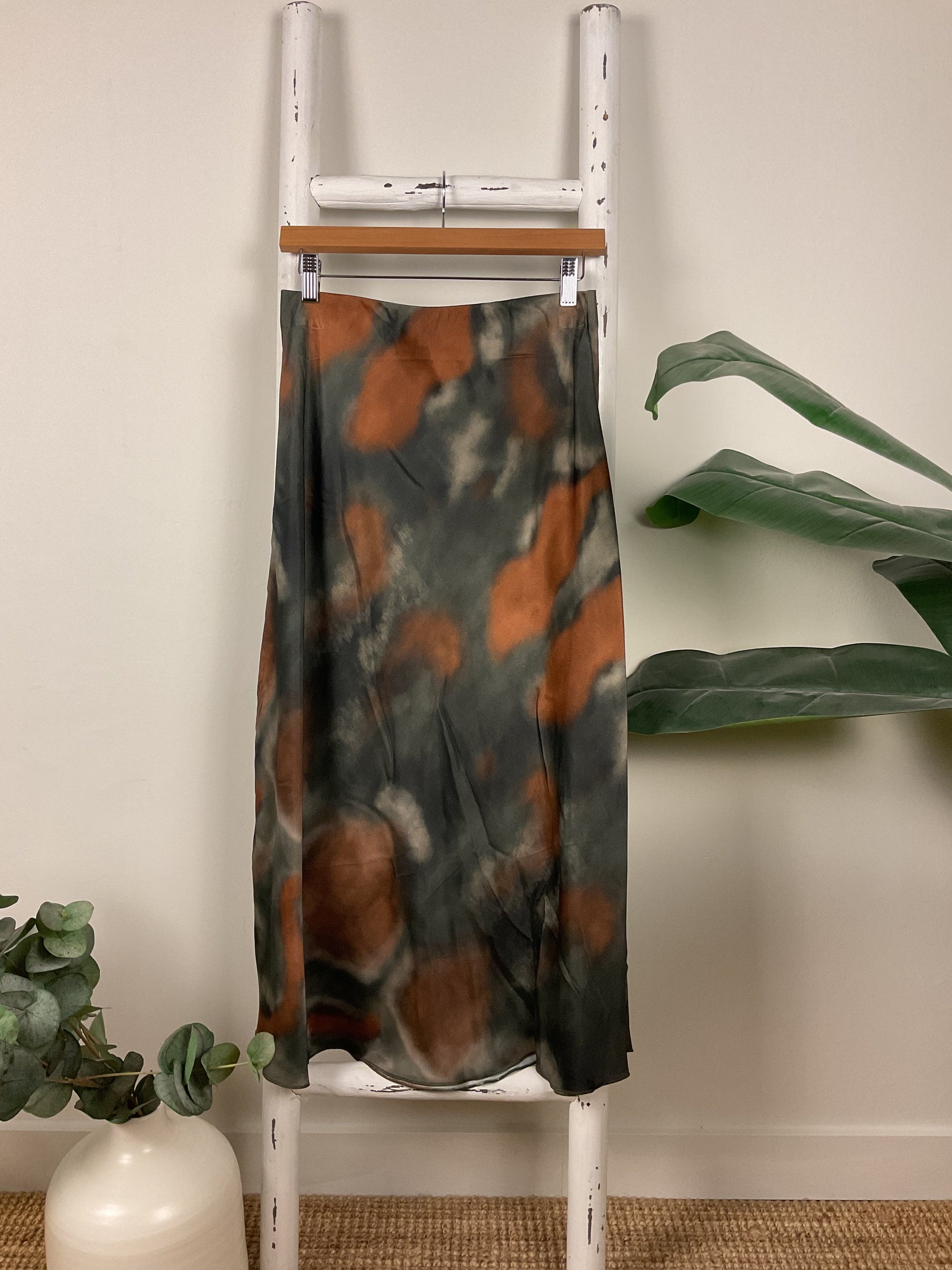 Falda saten estampada midi