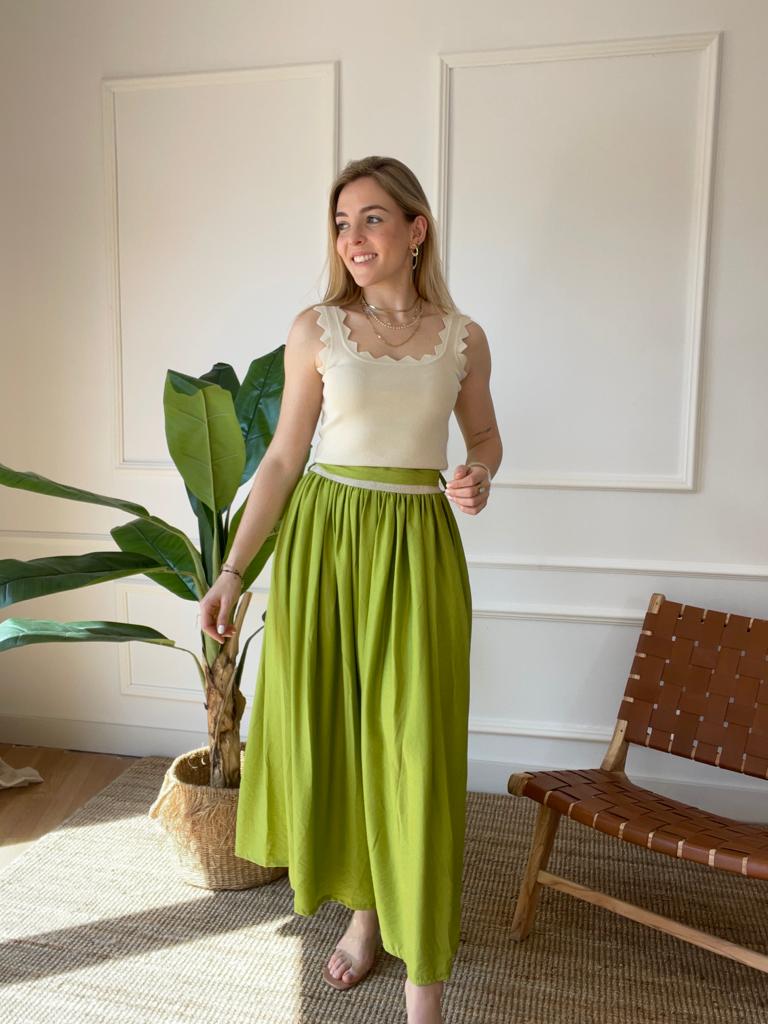 ¡Prepárate para la aventura! Esta Falda Micibo de largo fluida te ofrece la libertad de moverte y explorar. Un lazo en la cintura aporta un toque de elegancia al look, mientras que la amplia cintura te ofrece comodidad y movimiento. ¡Atrévete a experimentar!