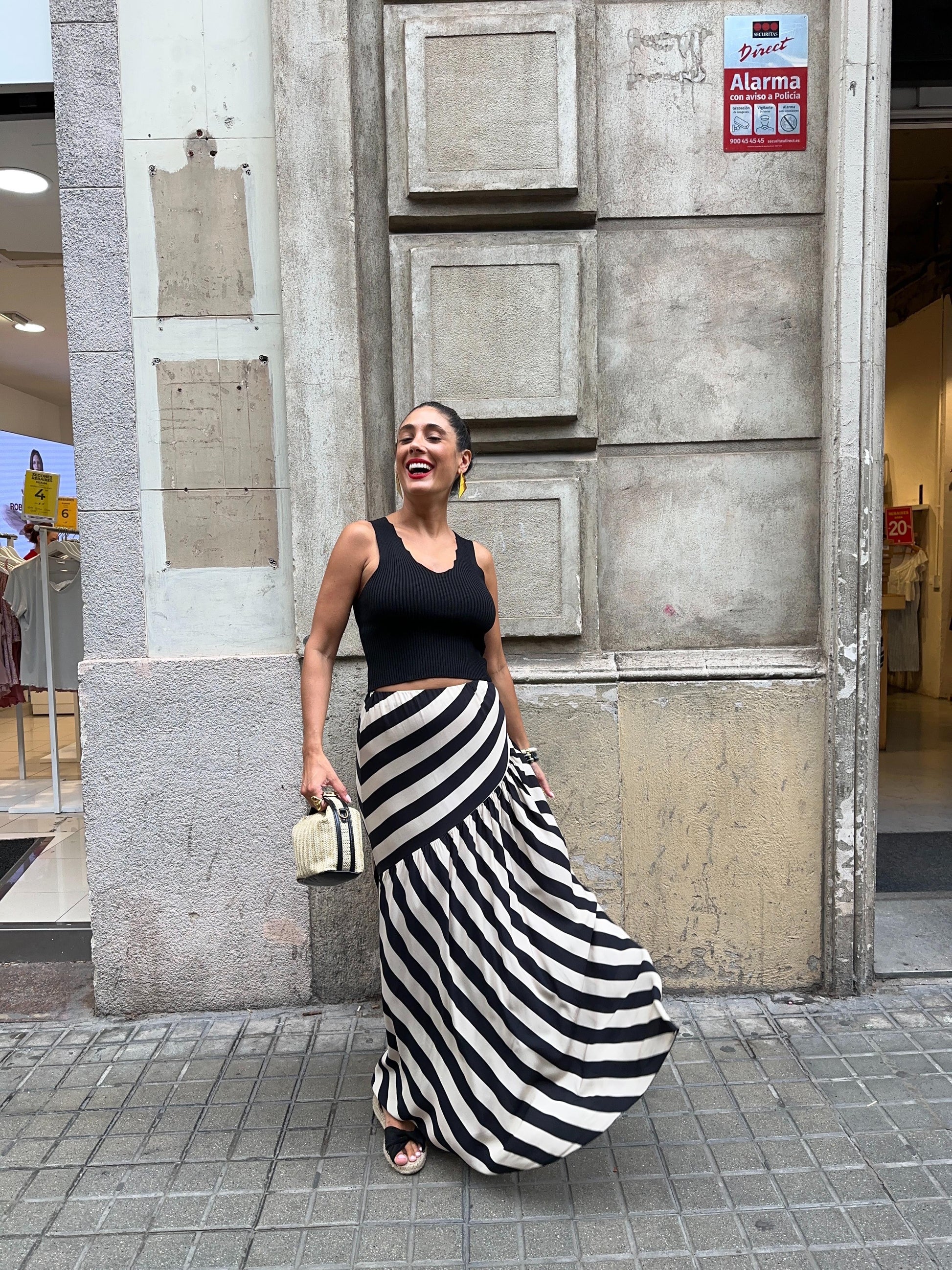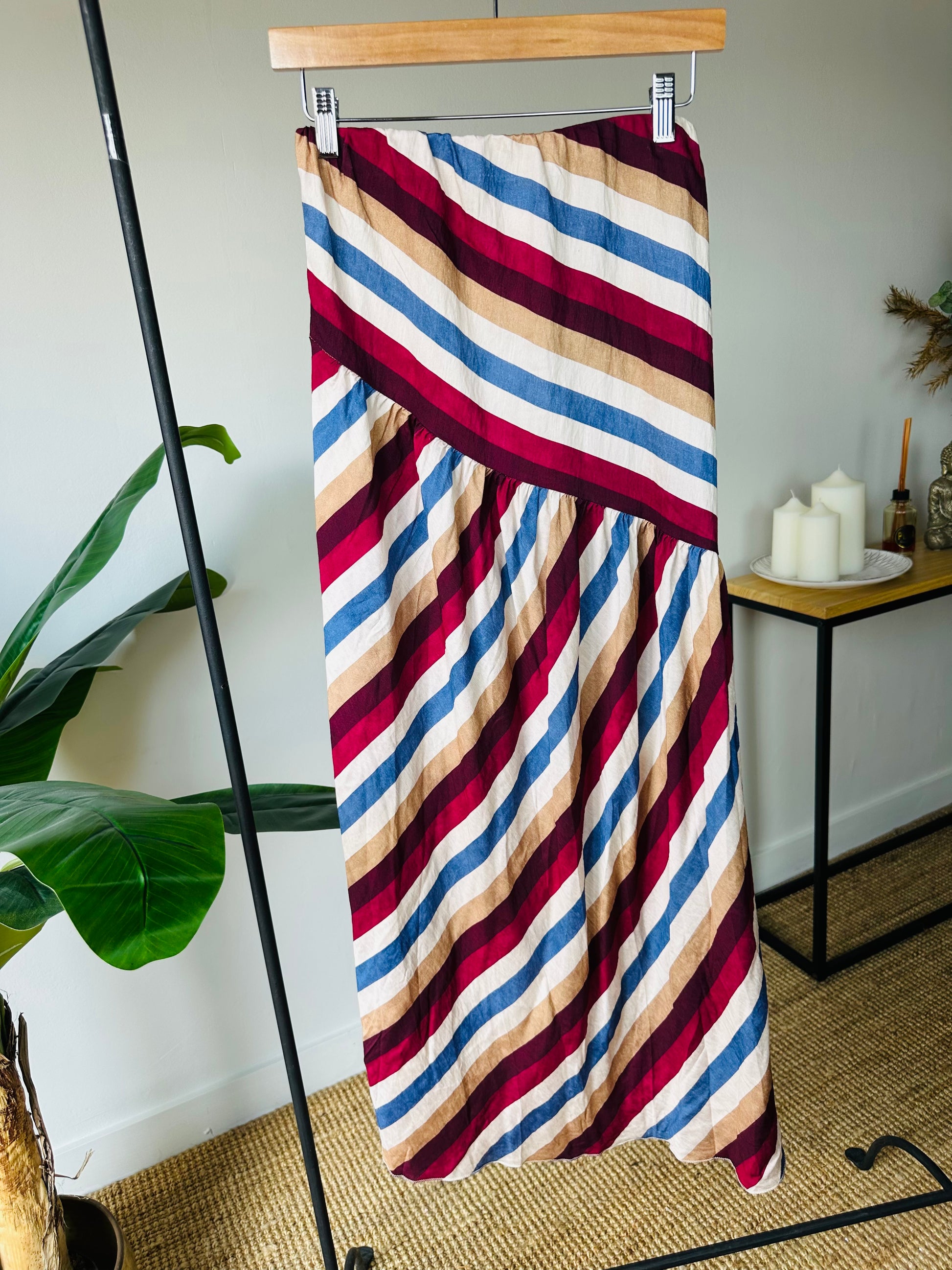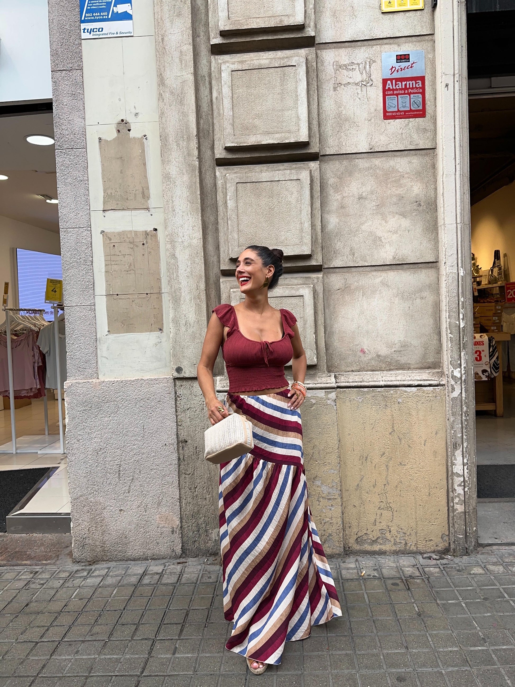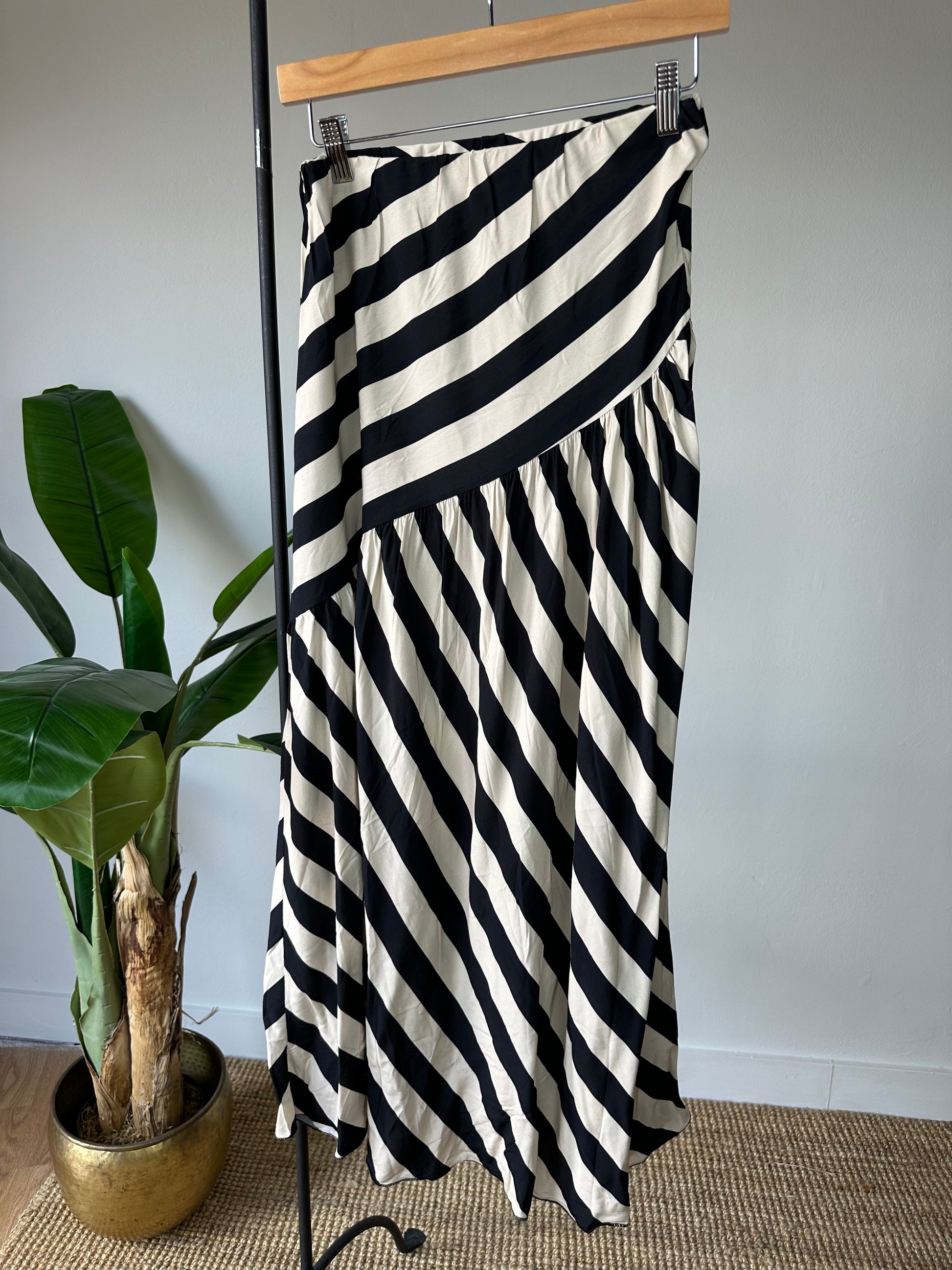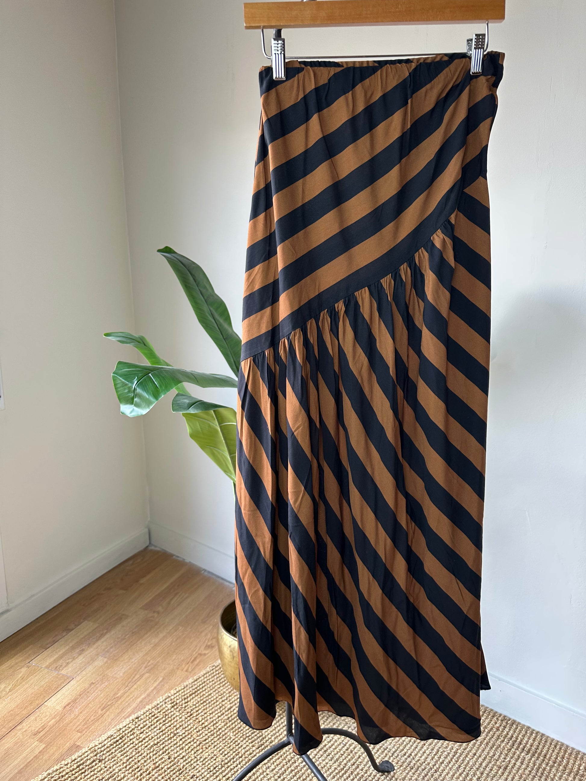 Falda Midi rayada con frunce