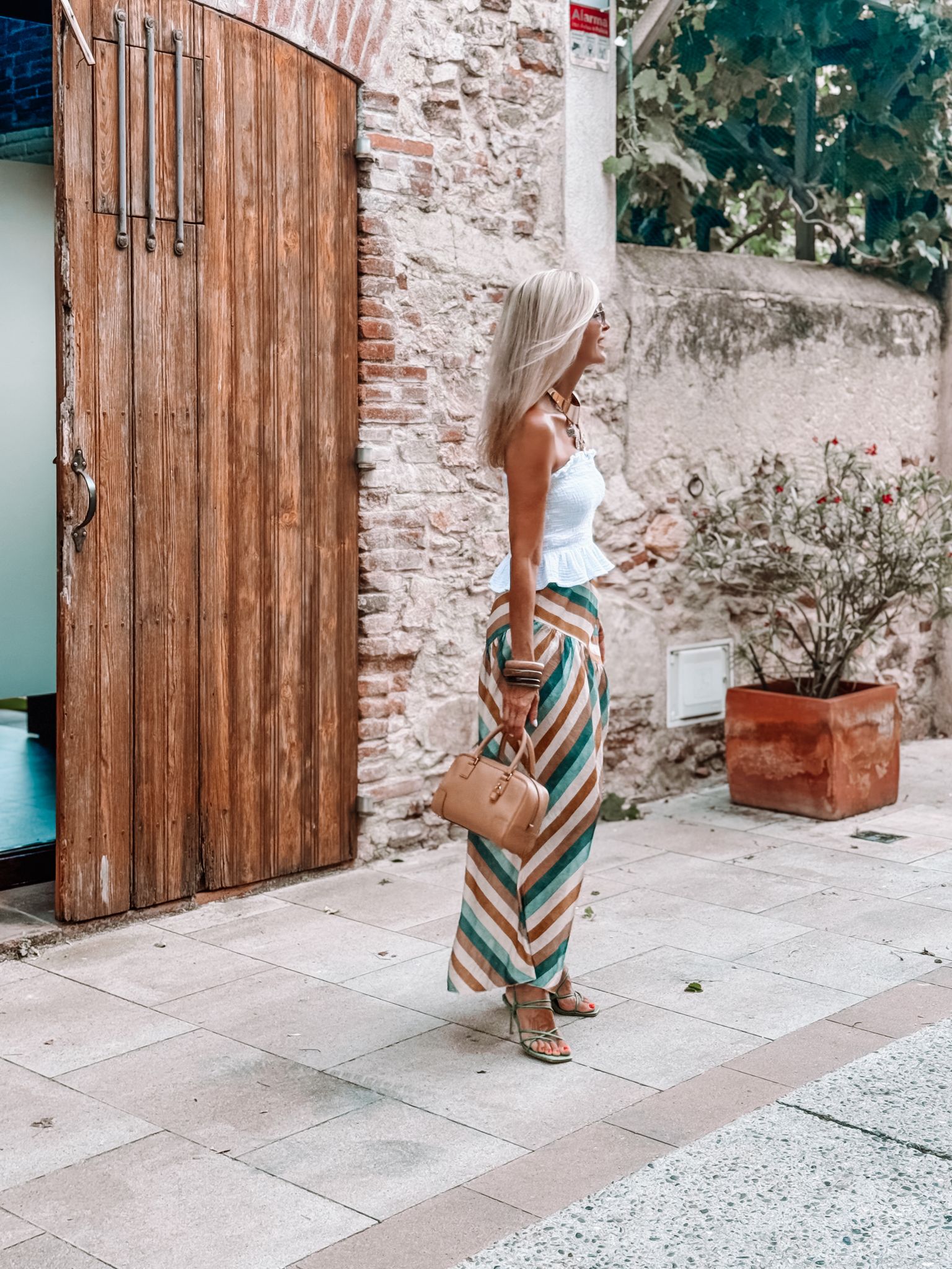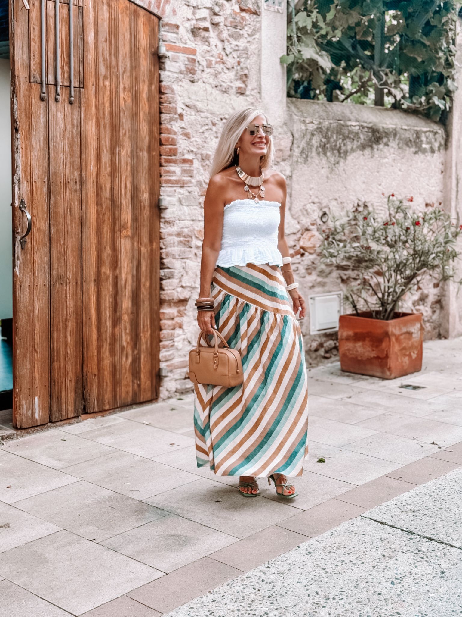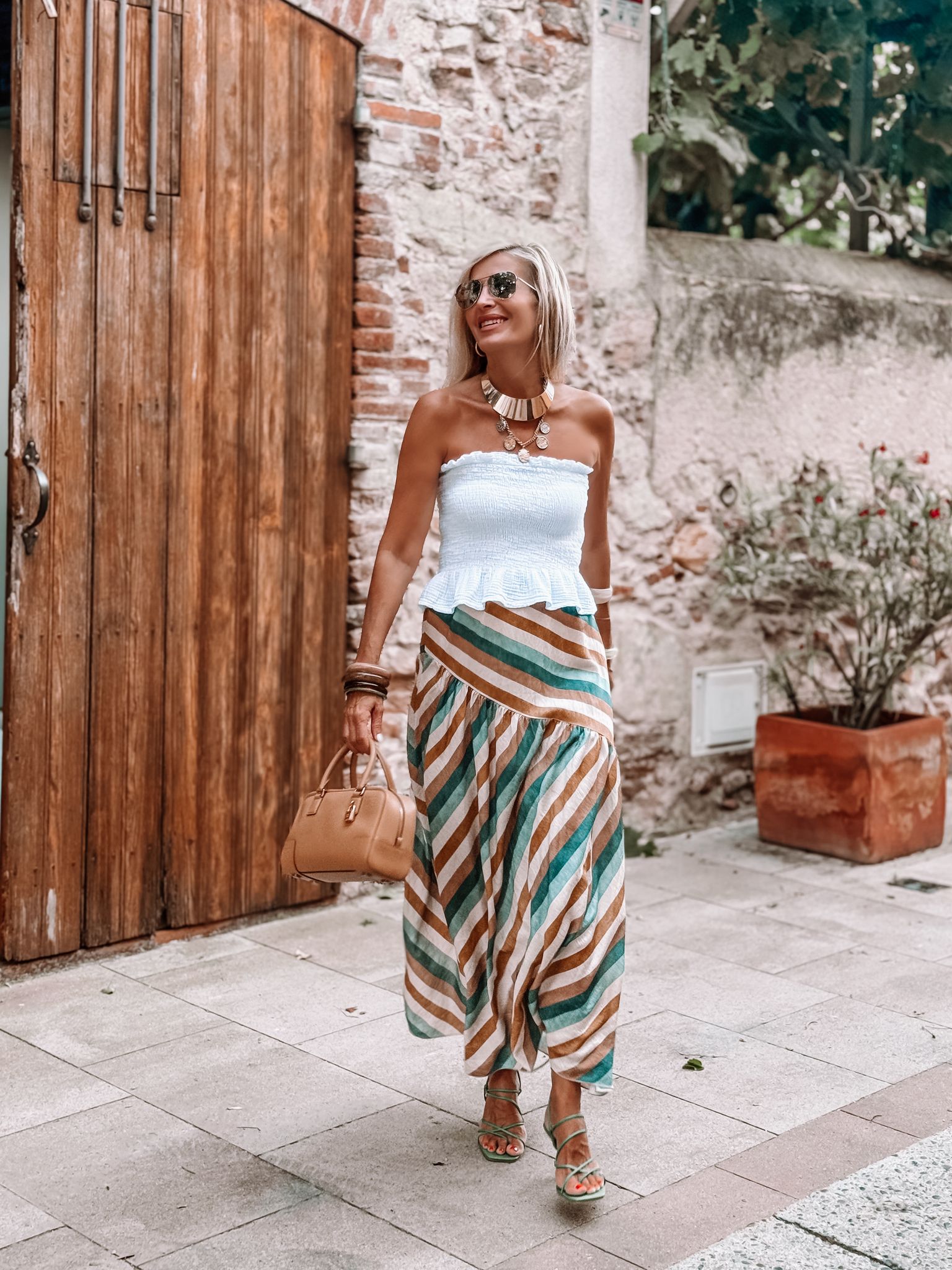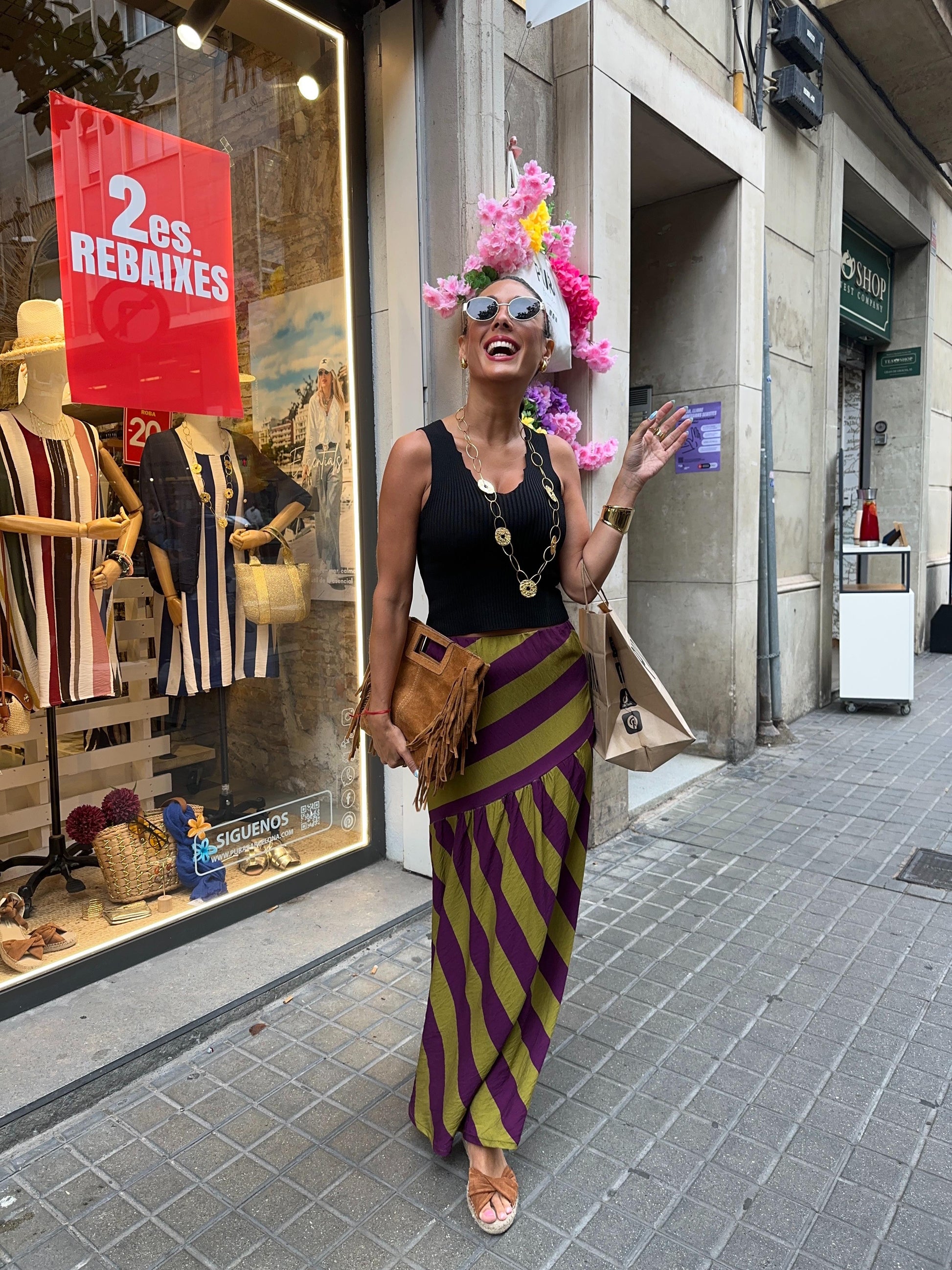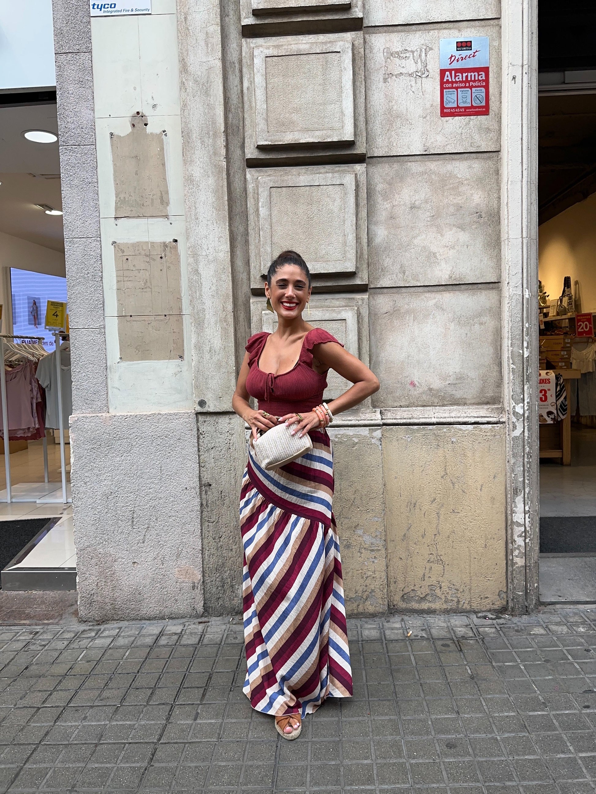 Falda Midi rayada con frunce