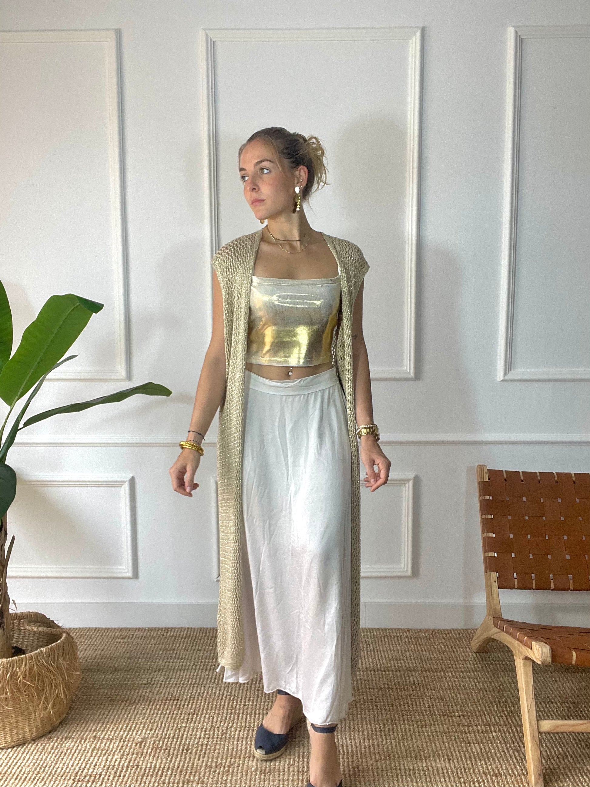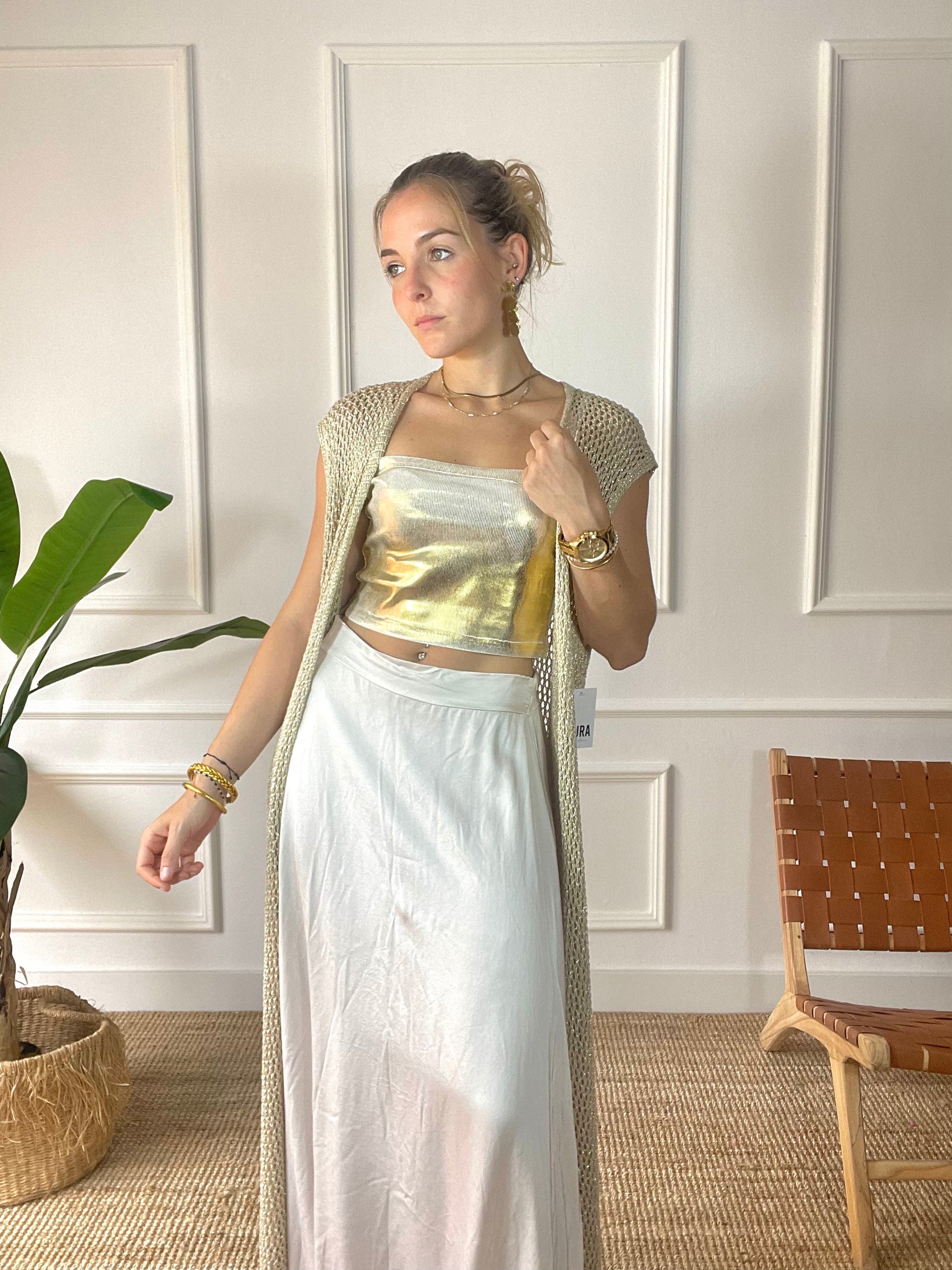 Nuestra Falda Quirkly es una prenda excepcional de diseño único. Los pliegues satinados de la falda capturan la luz con elegancia para dar una apariencia atemporal y lujosa. Esta falda es perfecta para cualquier ocasión importante.