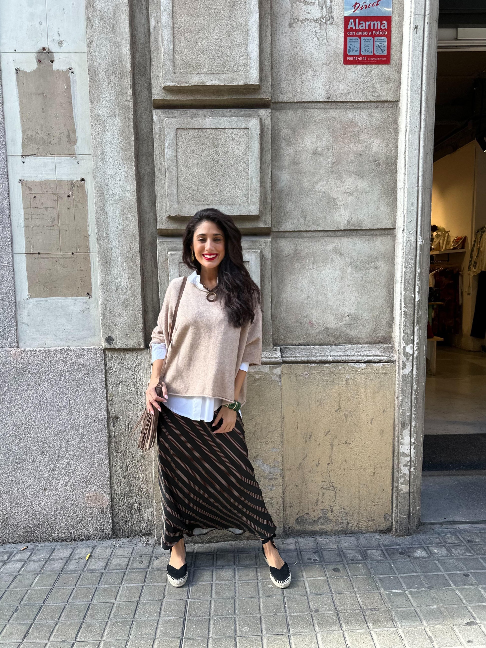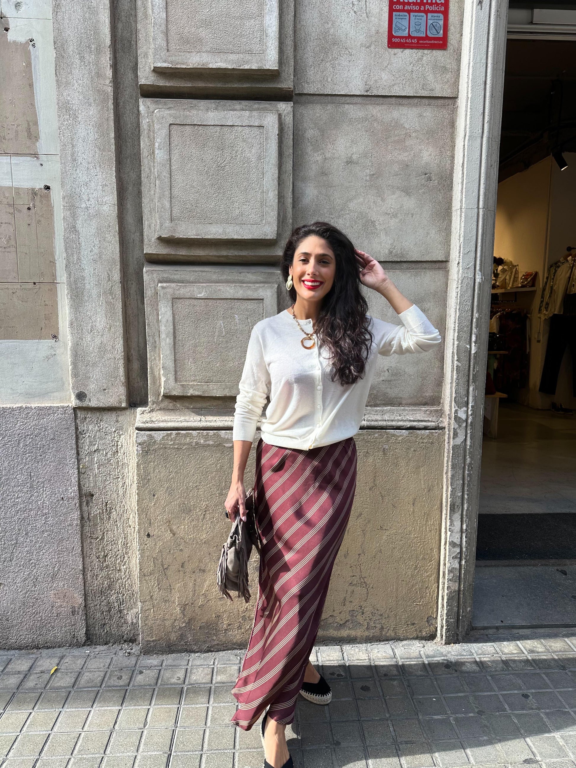Falda Midi de satén, raya diagonal