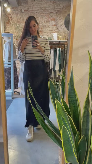 Con la Jersey Zina, tendrás un estilo único gracias a su cuello bardot y su diseño rayado. Además, su tejido de jersey te brindará comodidad y suavidad. ¡Disfruta de una prenda versátil y elegante para cualquier ocasión!