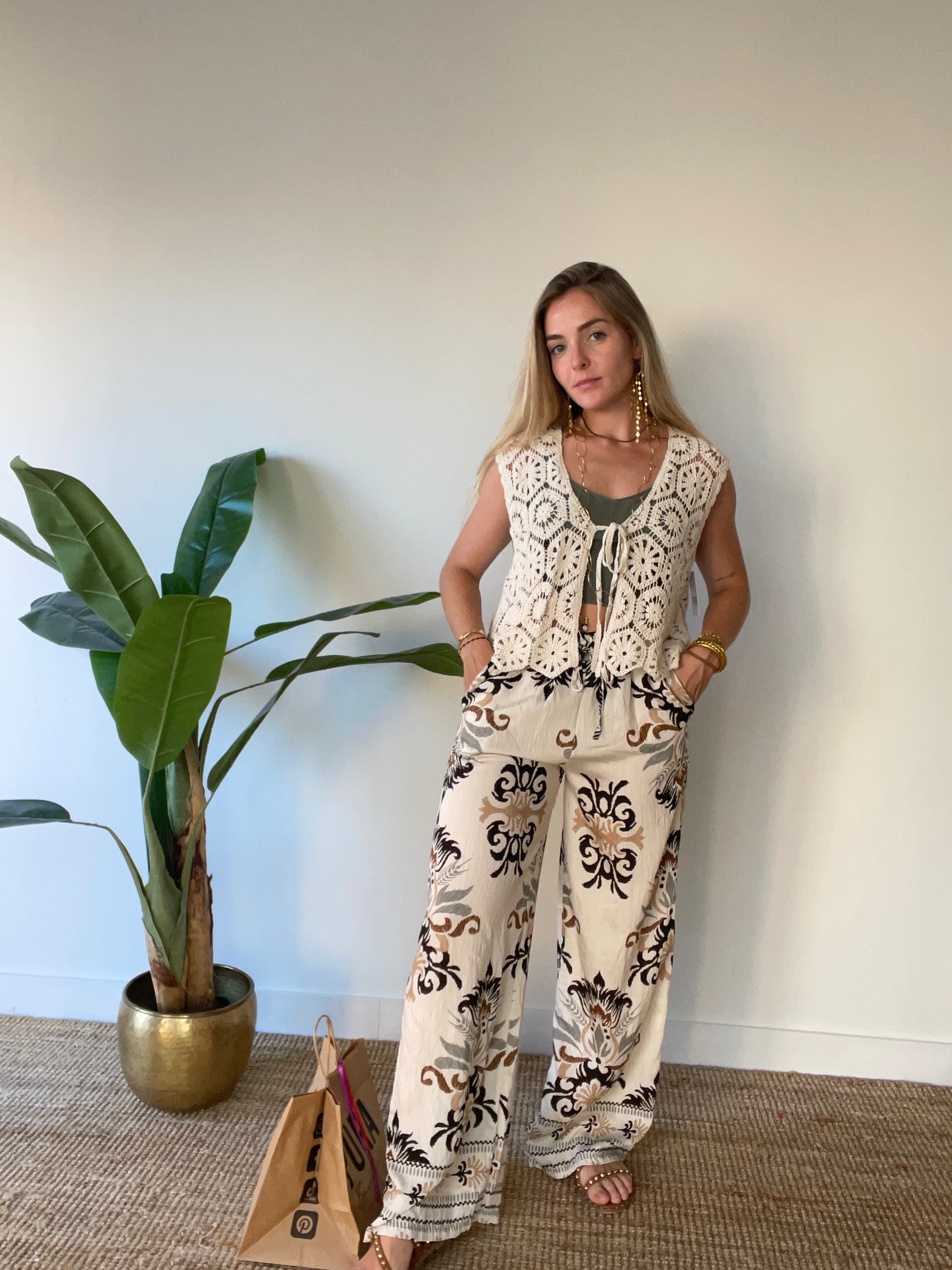 Descubra el lujo del Pantalón Marie, con un estampado intrincado y una guarda elegante. Diseñado con un estilo exclusivo y sofisticado para realzar su figura y su sentido de la moda. Añada un toque de arte y literatura a su guardarropa con este pantalón premium.