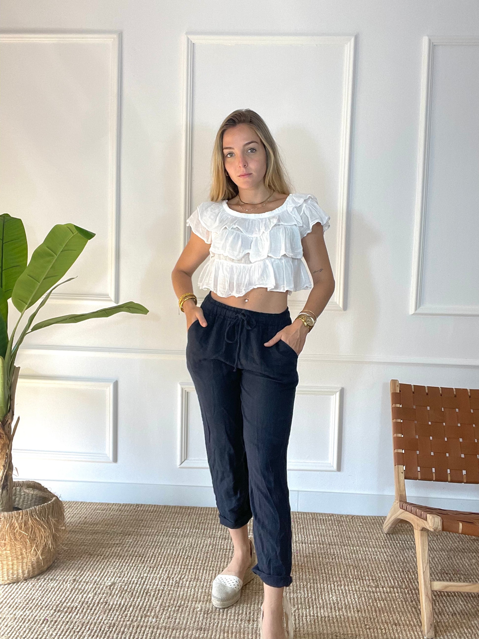 El Pantalon Melana es un pantalón de lino elegante que ofrece clase y confort. Cuenta con bolsillos elegantes y un corte largo para una apariencia moderna y exclusiva. Esta prenda adaptable es perfecta para cualquier evento. El Pantalon Melana hará que te destaques entre la multitud.