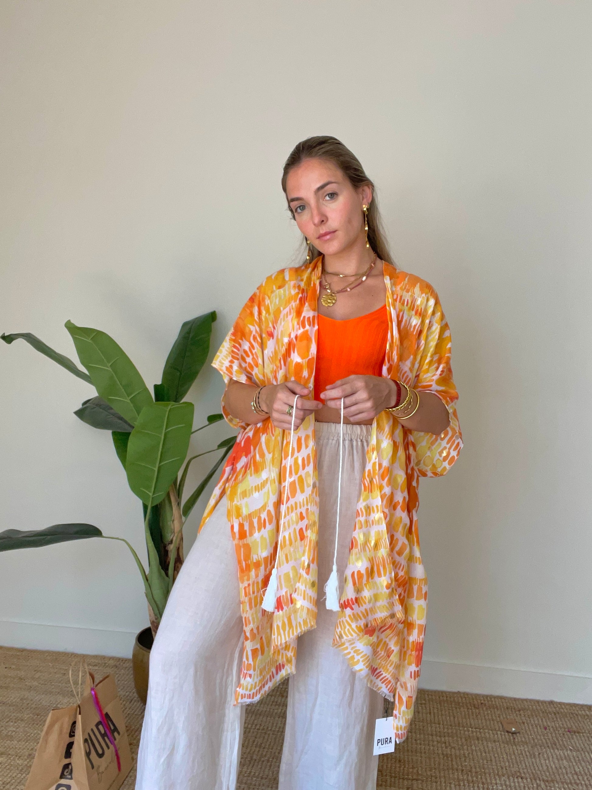 Un complemento de alta costura, el Pañuelo Rebeca France te envuelve en lujo y elegancia. Con un estampado en tonos dorados y mangas, este pañuelo es una joya artística que aporta sofisticación a tu outfit. Una pieza exquisita para mujeres que aprecian la belleza en cada detalle.