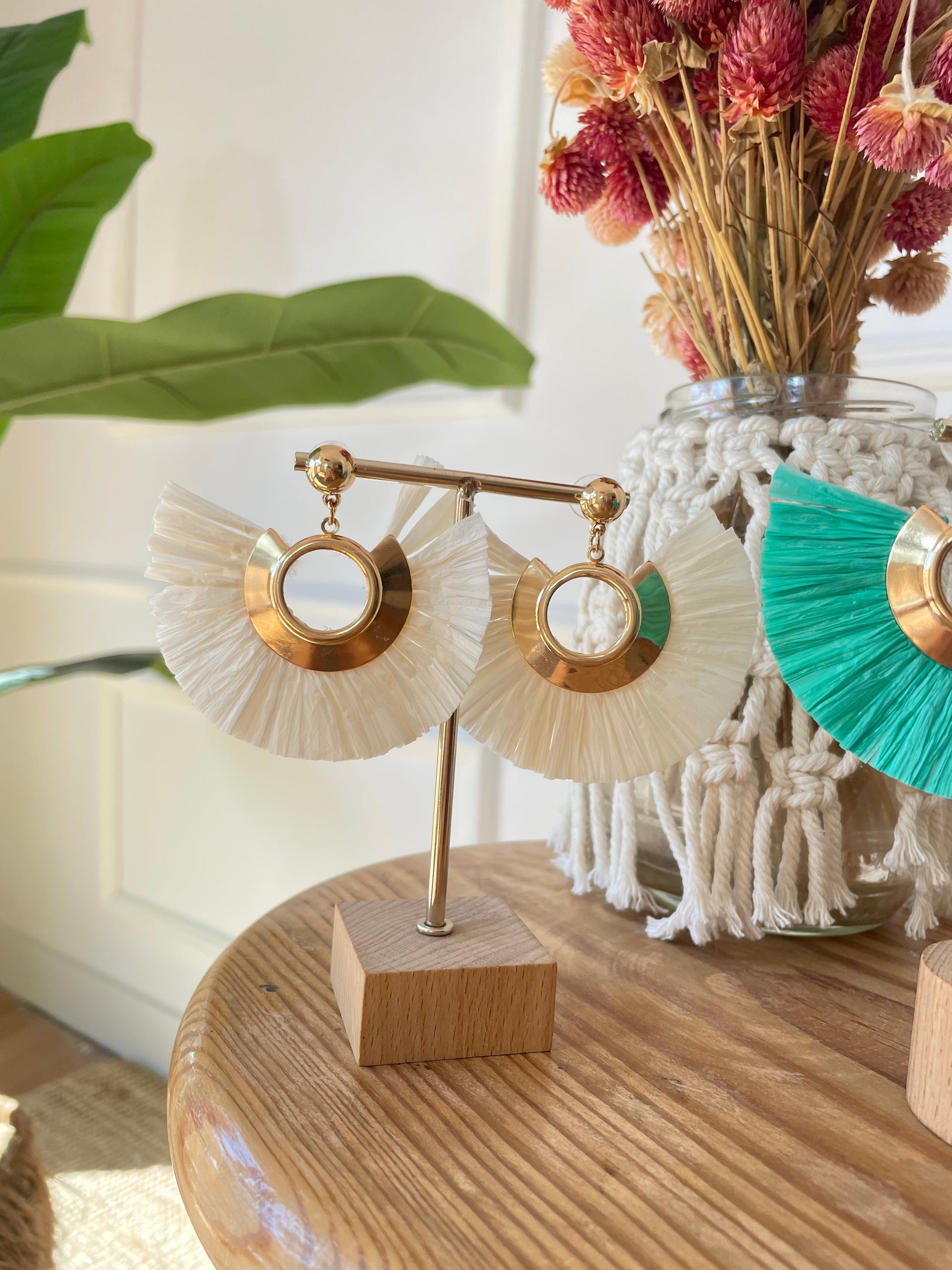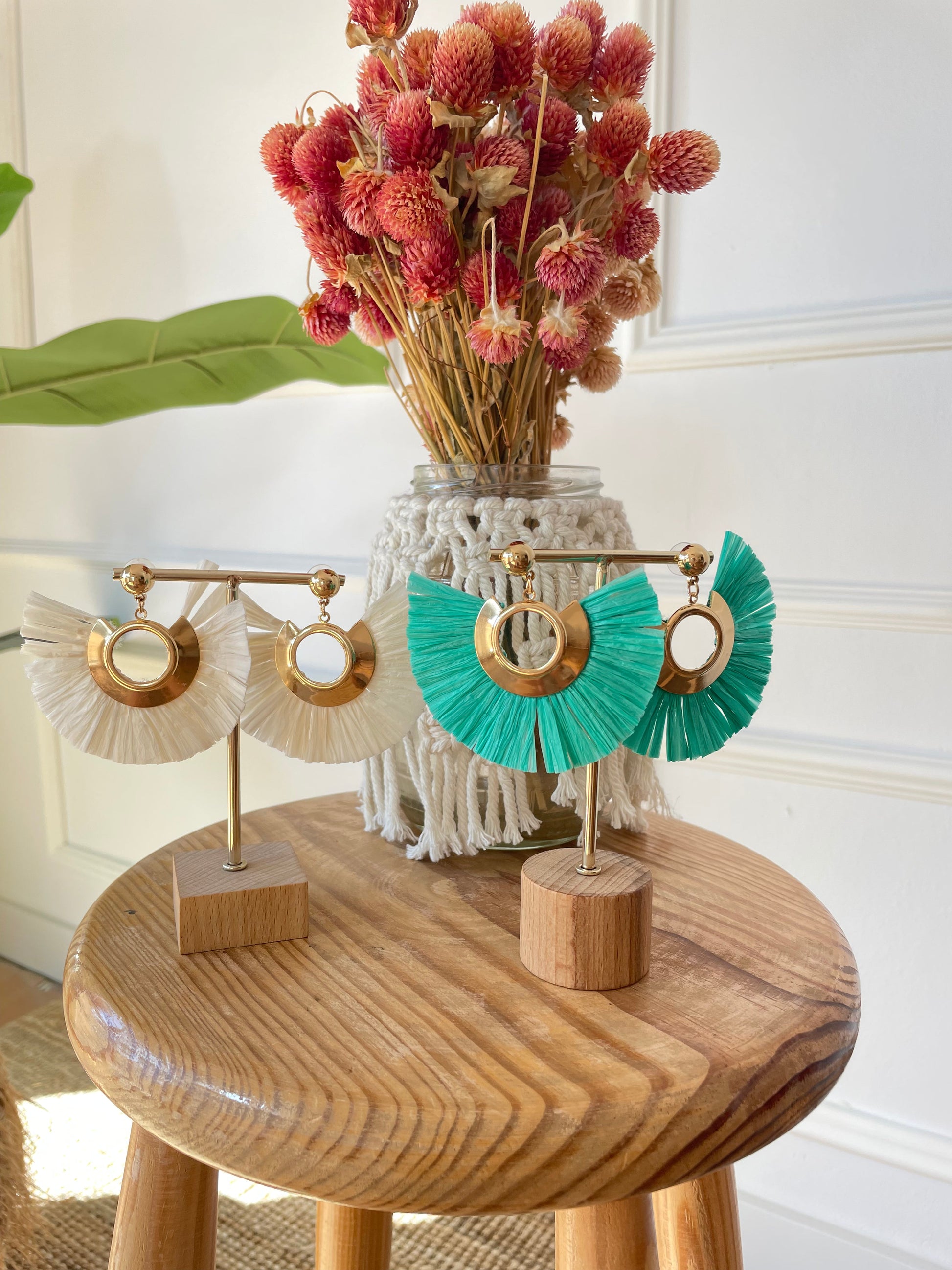 ¡Descubre los Pendientes Cleta! Estos elegantes y exclusivos pendientes, fabricados con acero inoxidable, tienen destellos de color gracias a sus detalles de paja. Perfectos para llevar con tu look más sofisticado.
