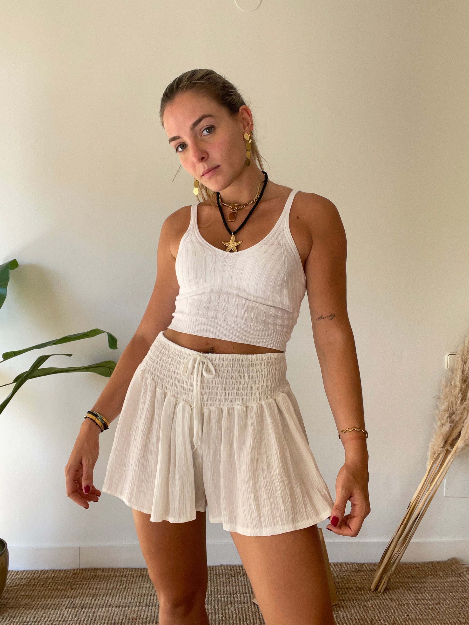 Descubra la comodidad y versatilidad de nuestro "Short Evelyn". Confeccionado en suave bambula, este short corto se convertirá en su prenda favorita para el verano. Disfrute de su corte moderno y fresco, ideal para cualquier ocasión. Un lujo para su guardarropa de verano.