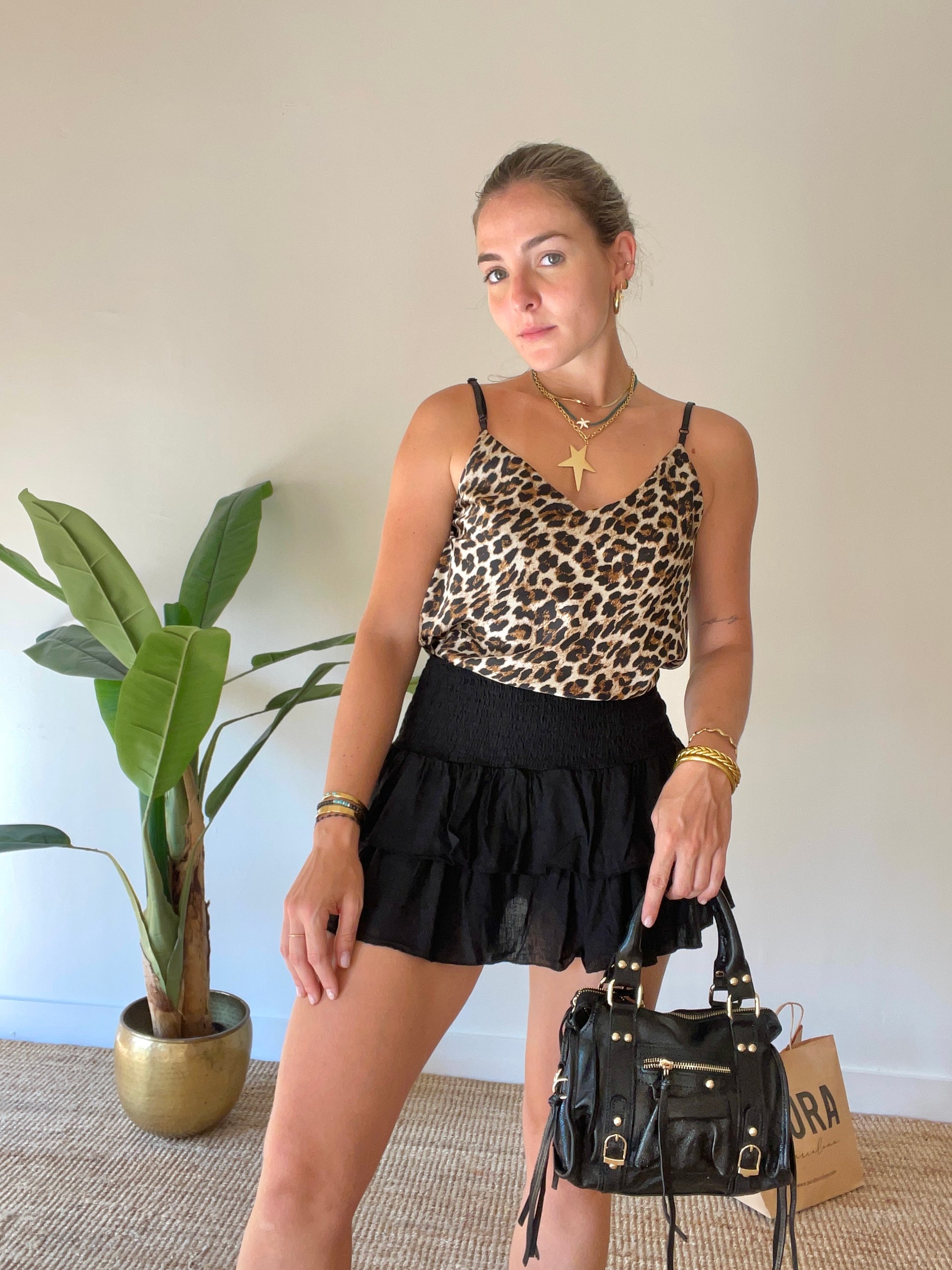 Descubre tu lado más salvaje con nuestro Top Ada de satén con estampado animal. La suave tela y el diseño elegante te harán sentir como una auténtica diva. Combina este top con unos pantalones ajustados para un look perfecto para una noche en la ciudad. ¡Siempre a la moda con Top Ada!