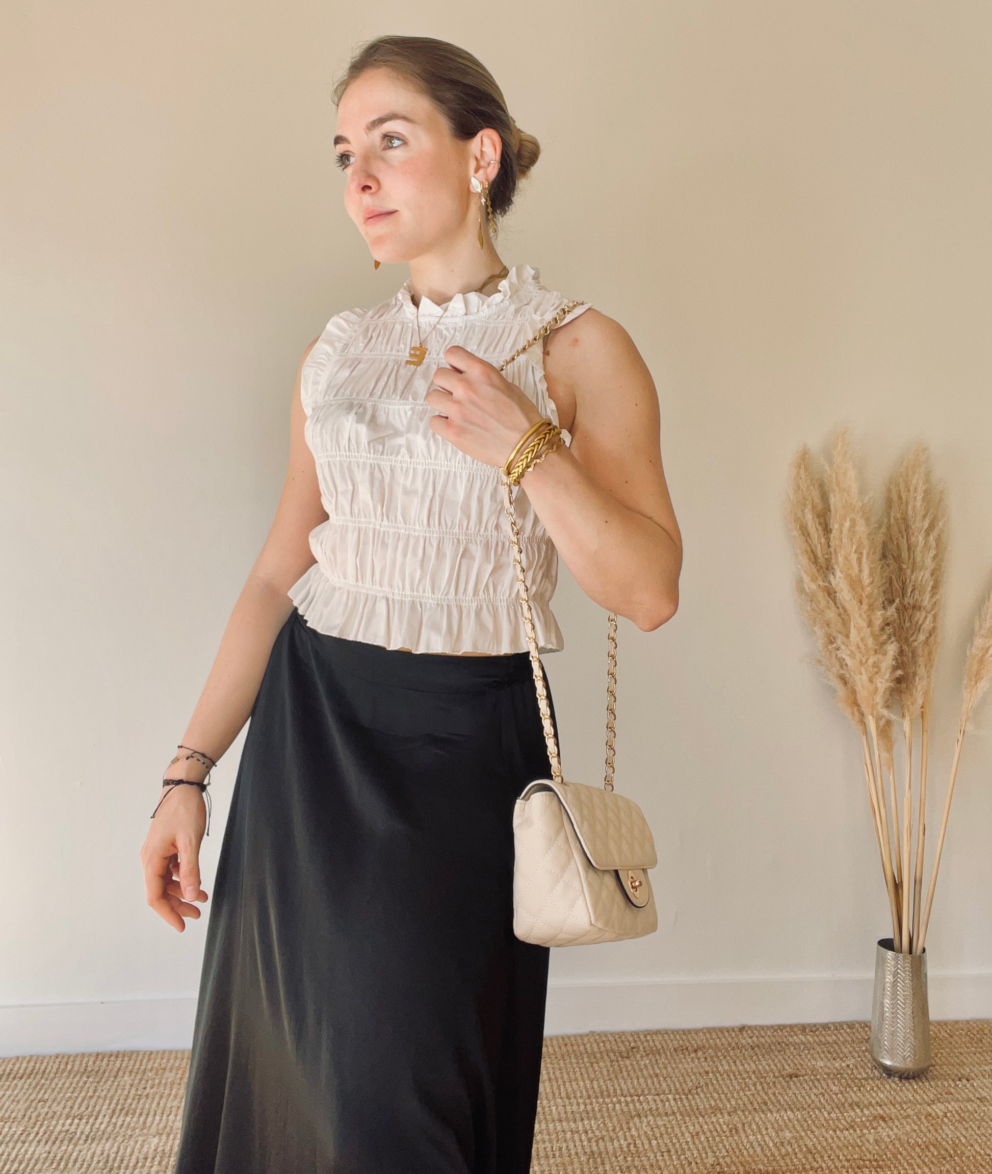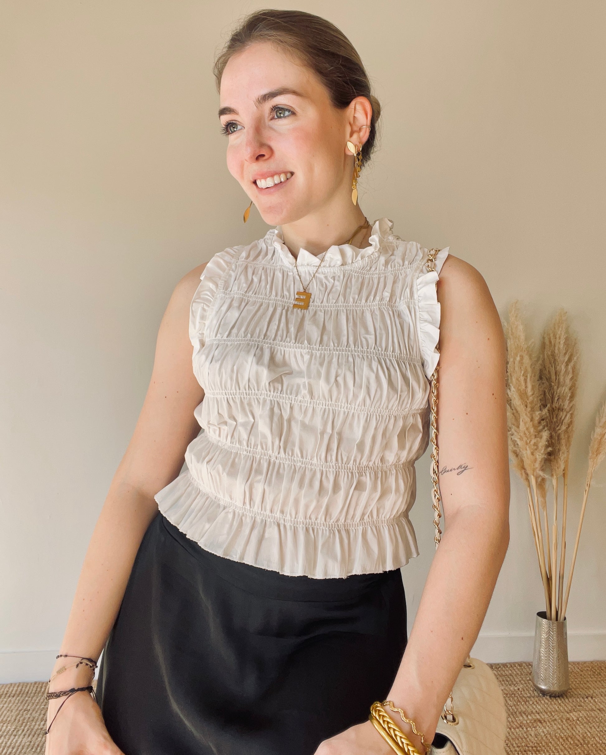 Eleva tu estilo con el Top Arleth Blanco, hecho a mano con costuras perfectas y un hermoso detalle de frunce. Encanta a todos a tu alrededor con este diseño sofisticado y moderno. ¡Sé el centro de atención con este top único!
