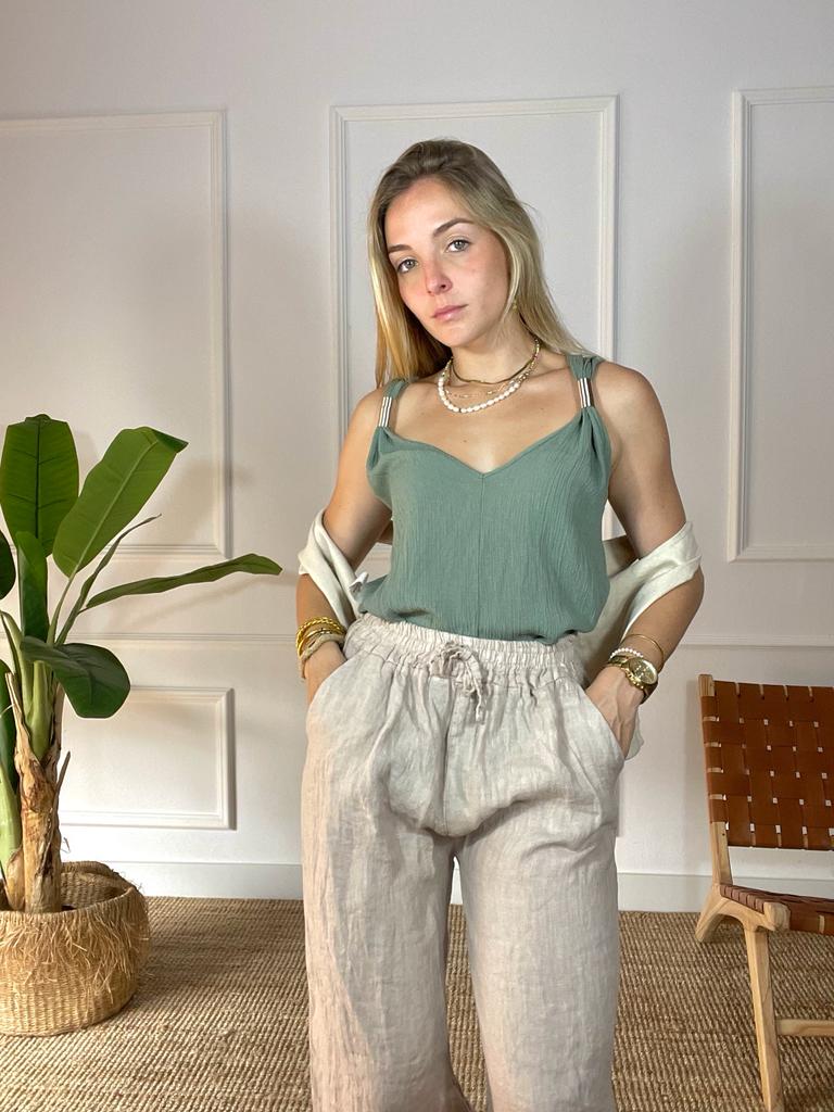Top Calisto ofrece la elegancia de una argolla en bretel materializada en lujo de primera clase. Esta prenda refinada te ofrece un accesorio minimalista y versátil, destacando como una pieza de estilo exclusivo.