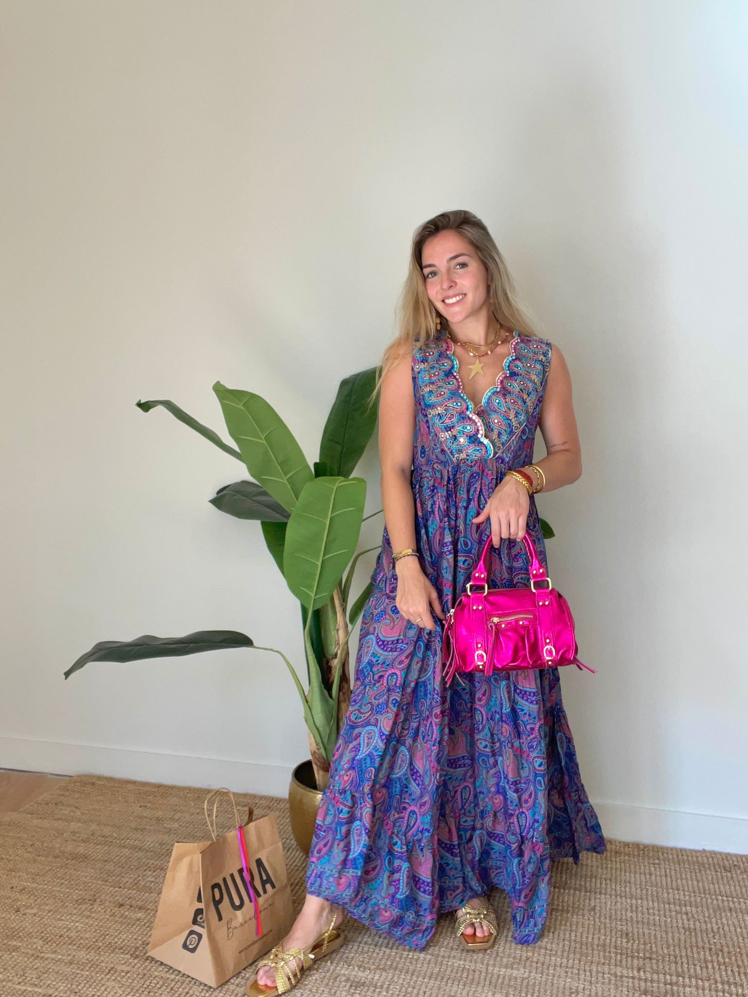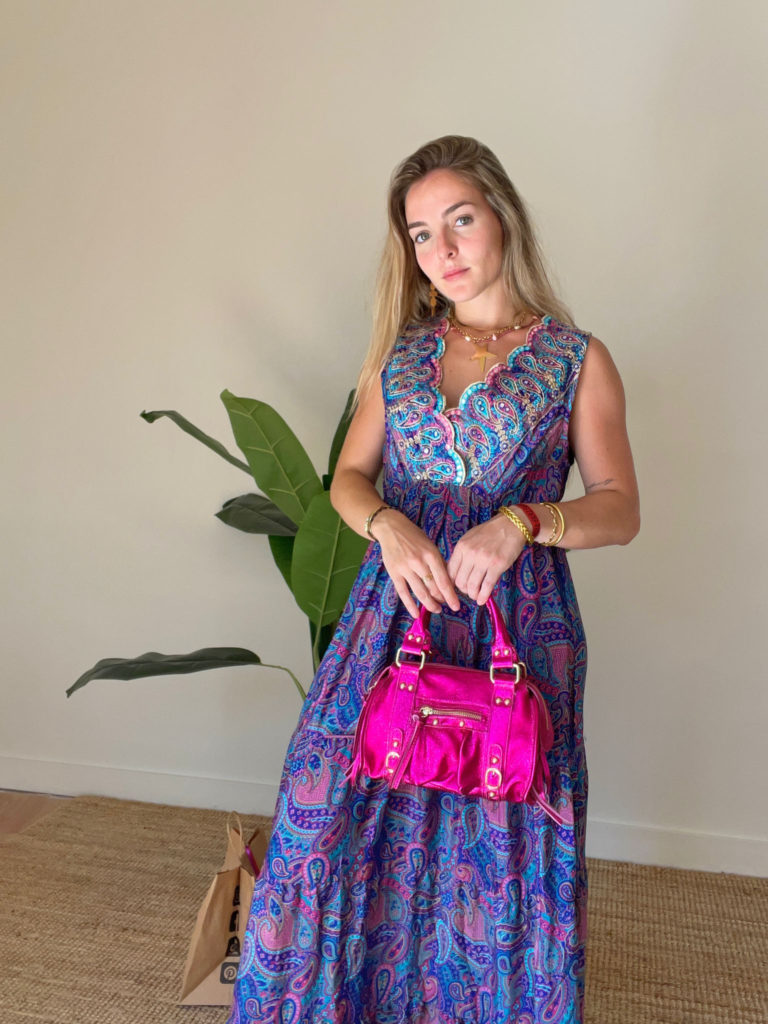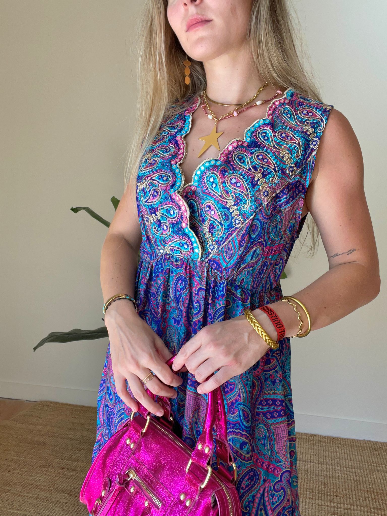 Descubre el lujo de nuestro vestido Élodie. Confeccionado en seda y adornado con un hermoso estampado y lentejuelas, este vestido largo te hará sentir elegante y exclusiva en cualquier ocasión. Disfruta de la suavidad de la seda y el brillo de las lentejuelas con este imprescindible para tu guardarropa.