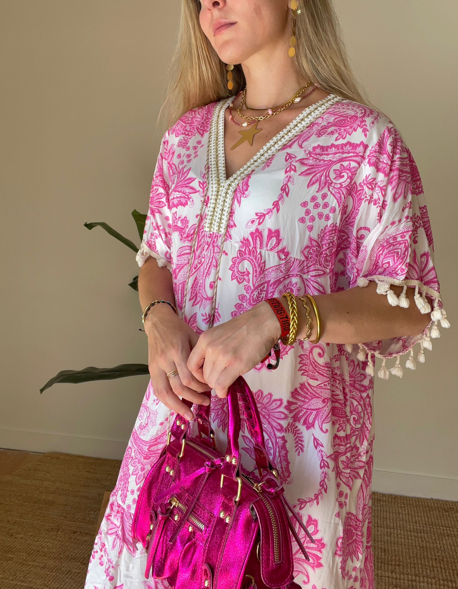 Descubre la elegancia con nuestro Vestido Félice. Hecho con fibrana estampada y detalles de manga con borlas, este vestido te hará sentir sofisticado y exclusivo. Resalta tu estilo con este vestido único, perfecto para cualquier ocasión. ¡Haz una declaración audaz con el Vestido Félice!