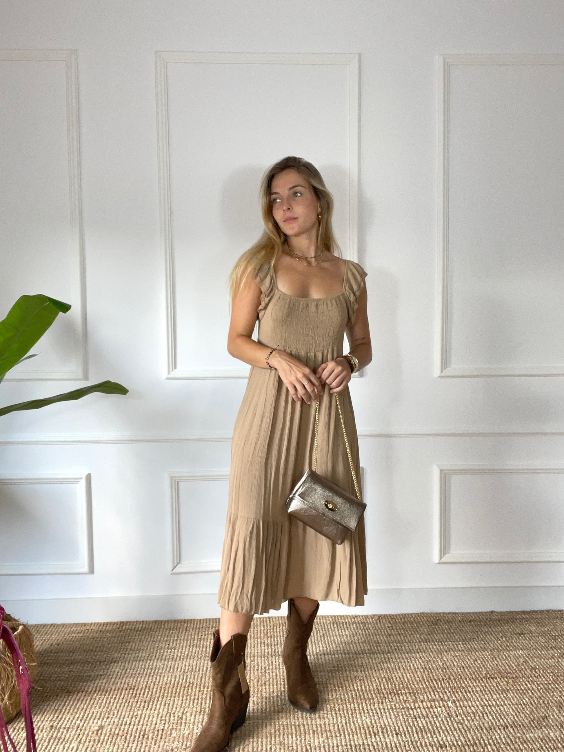 Combina sofisticación, diseño innovador y un toque de lujo. Nuestra Vestido Lina está elaborado con un exclusivo tejido nido de abeja el cual le confiere a tu apariencia un toque único. Olvídate de lo tradicional y usa este vestido largo para destacar en cada momento.