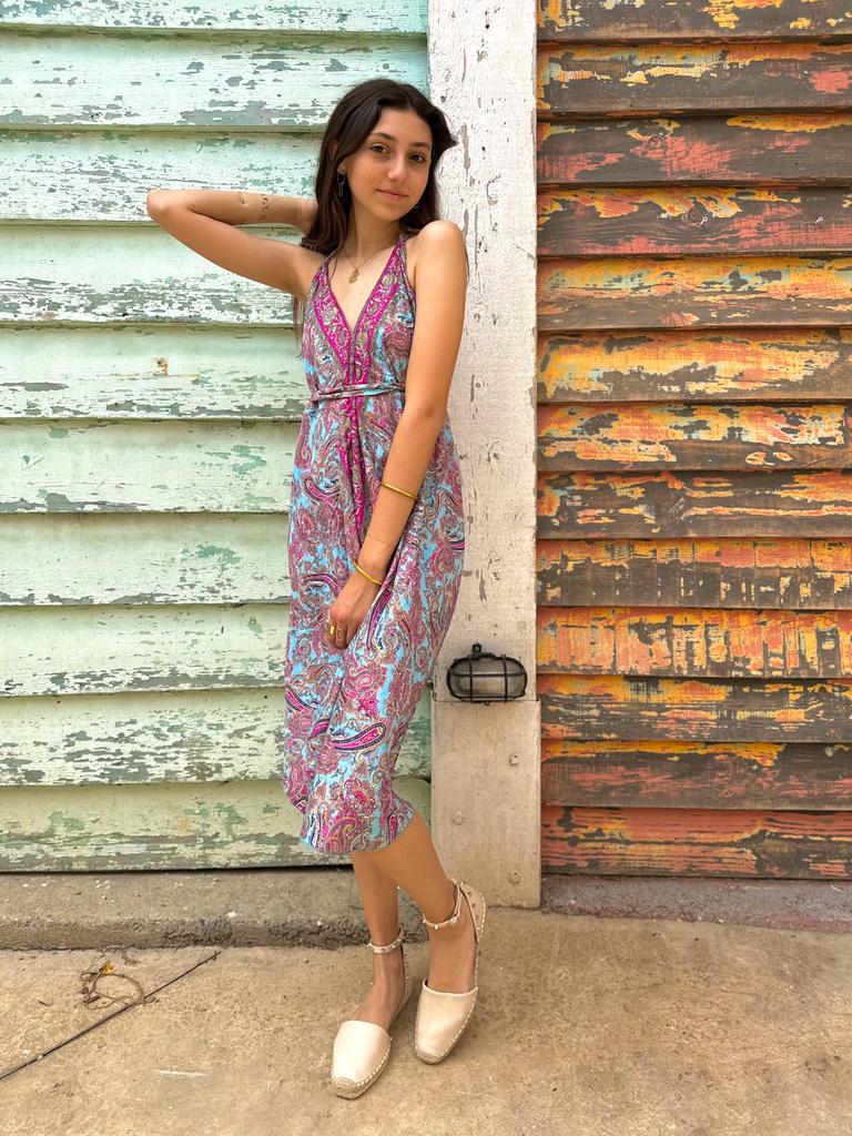 Inspirado en el lujo moderno, el Vestido Melany de seda estampada es la apuesta estética perfecta para ocasiones especiales. Una maravilla de la moda, con su silueta de tres cuartos y una combinación de colores seductora, le otorga a quien lo lleva una elegancia única y exclusiva. Una maravilla vestida para deleitar.