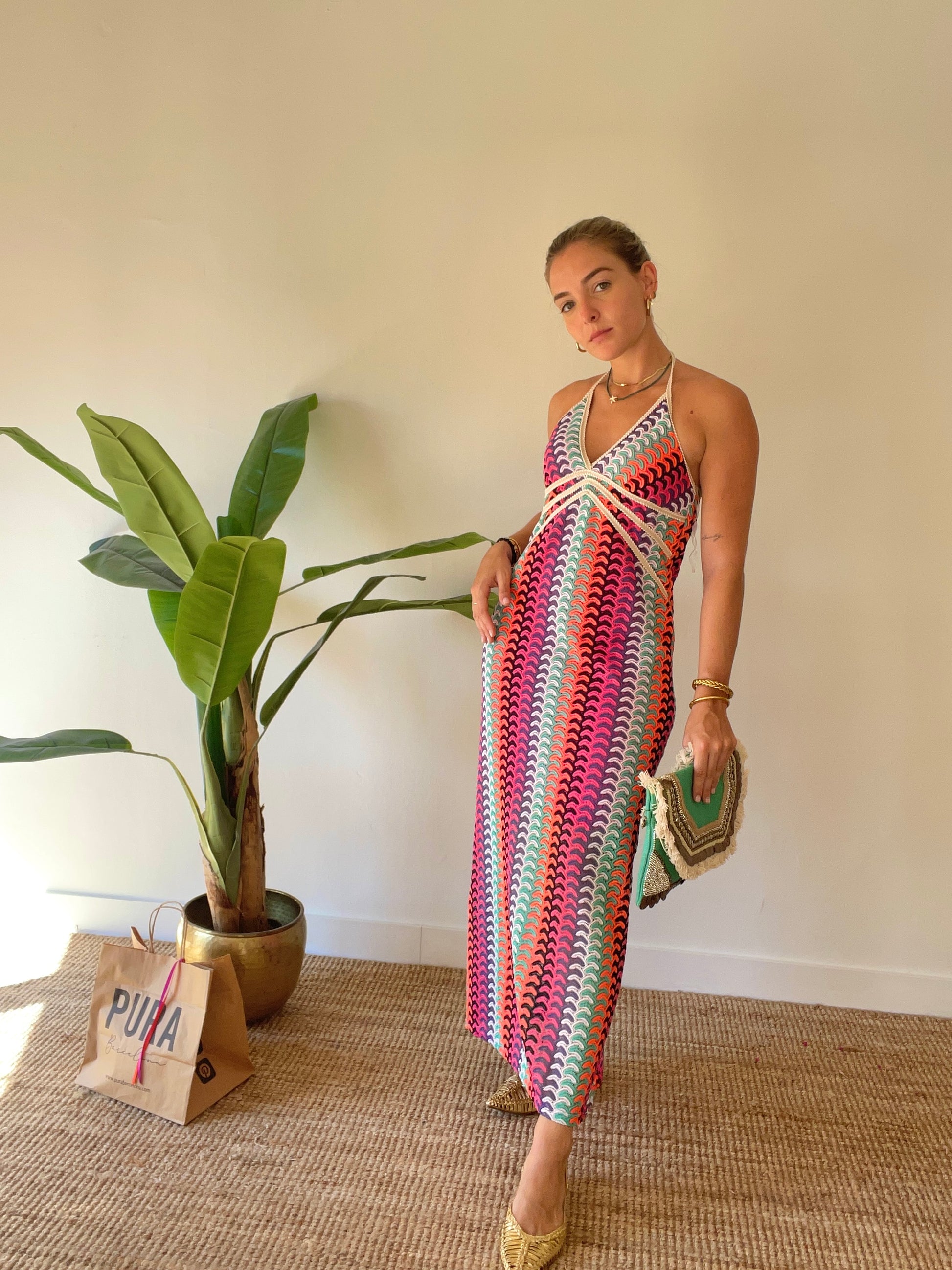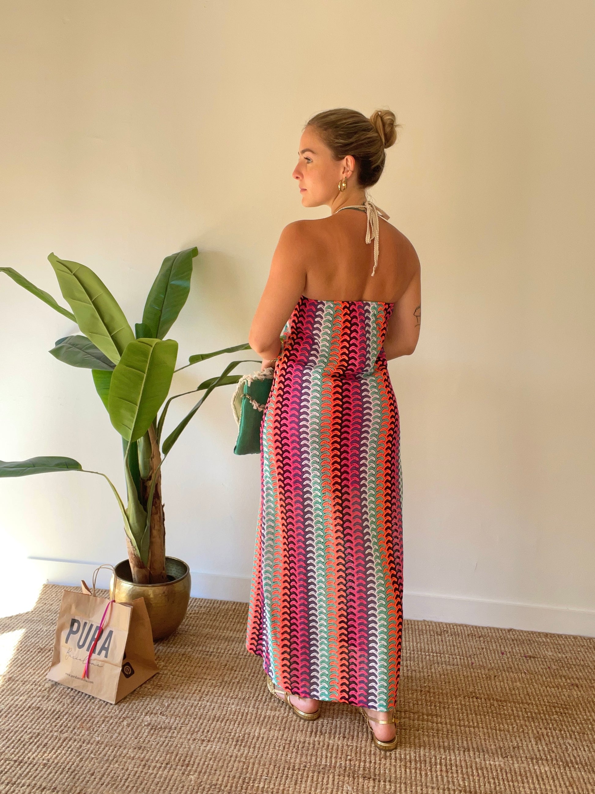 Descubre el encanto y la elegancia del vestido Quarry. Confeccionado en crochet con delicadas ondas y un lazo para anudar en la nuca, este vestido es perfecto para aquellas que desean un look sofisticado y exclusivo. Resalta tu belleza y estilo con este vestido único en su clase.